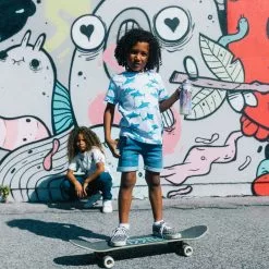 Deux Par Deux Inted Cotton Jersey Tee Light – Heather Grey Dinosaurs