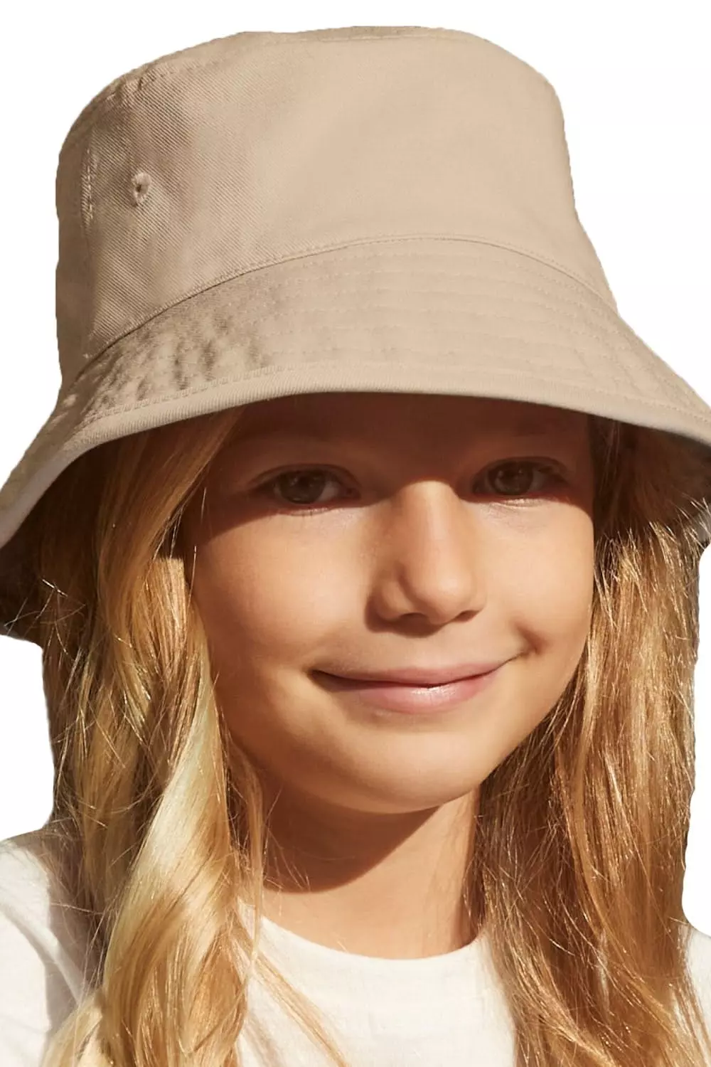 – Polycotton- Twill fabric- Lined, stitched ventilation eyelets, structured brim, tearaway label.- Sun rating: UPF 50+- Sustainability: Control Union certified, OCS standard, organic cotton, reach- Gender: Unisex kids