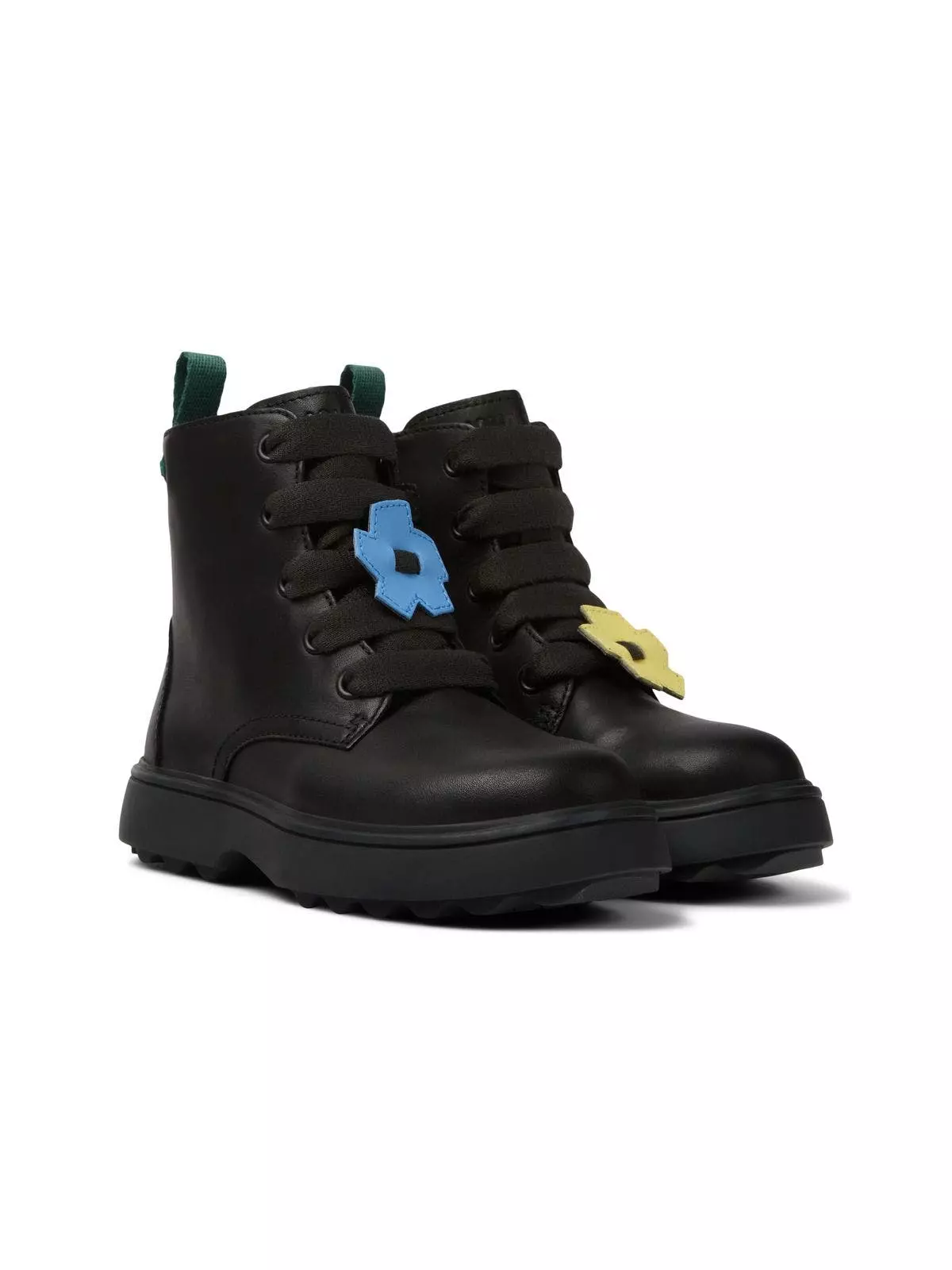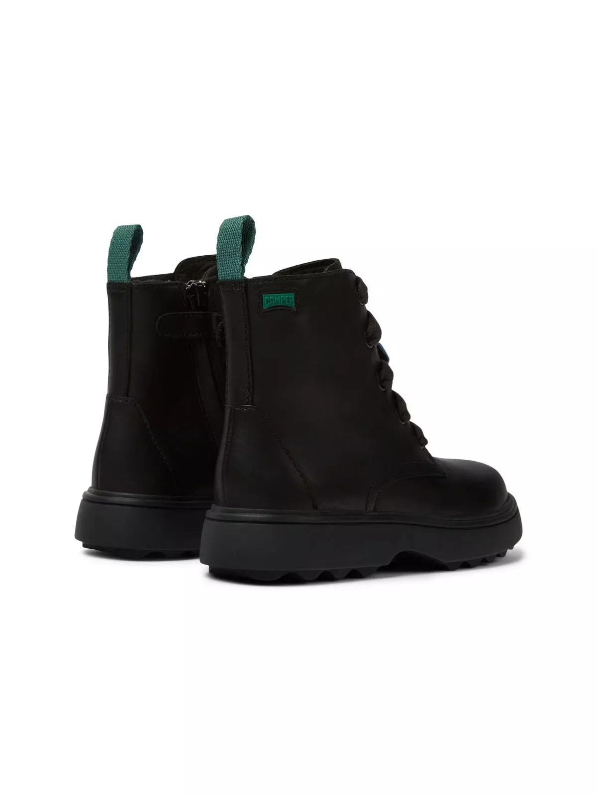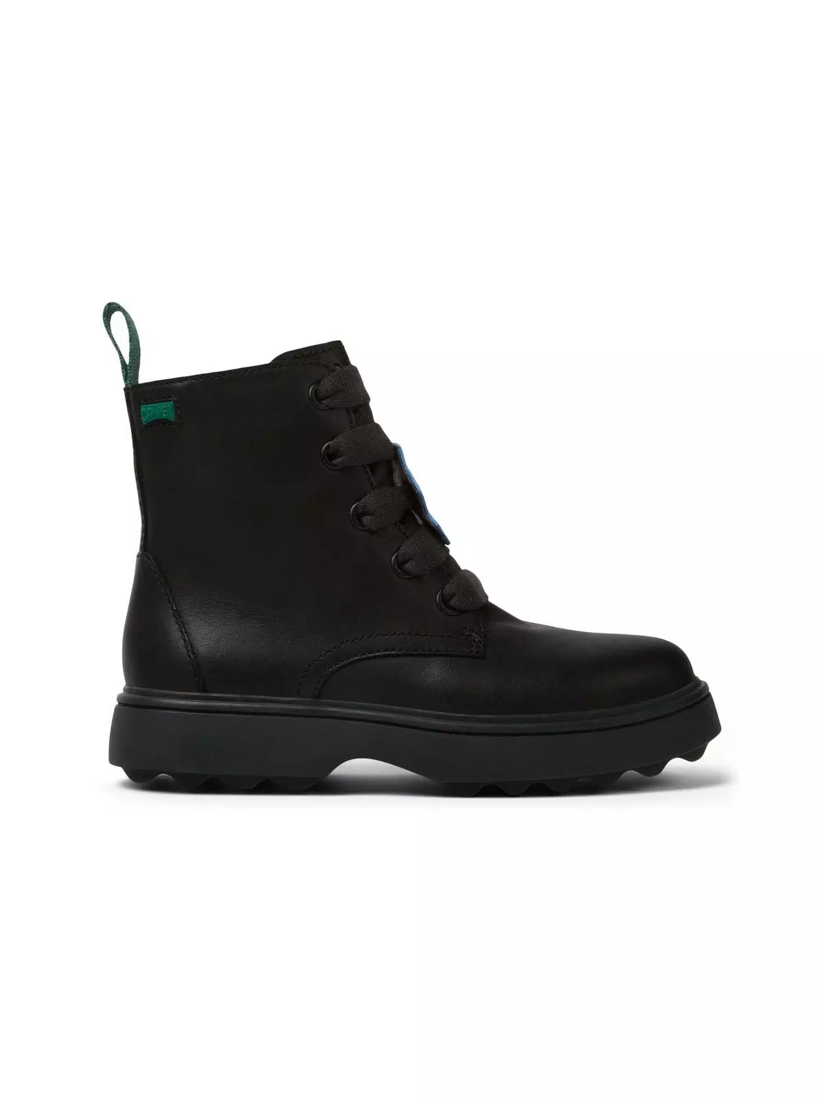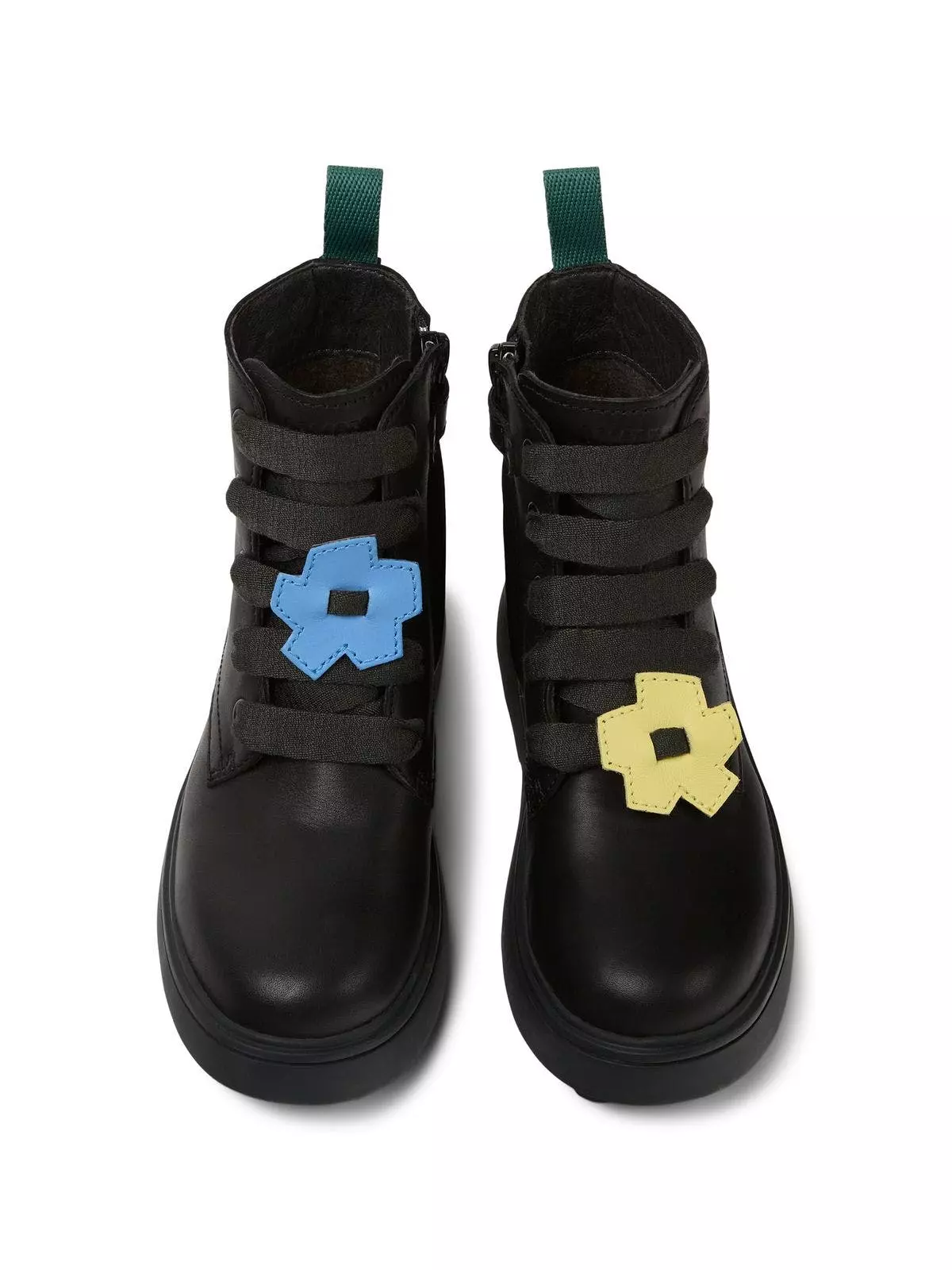 Black leather boots for kids, with side zip closing system, OrthoLite® insoles and 100% rubber outsoles.Born in 1988, our classic TWINS concept — opposite yet complementary – challenges the idea that shoes must be identical and lives on in these mismatched kids´ shoes to form a truly unique pair.