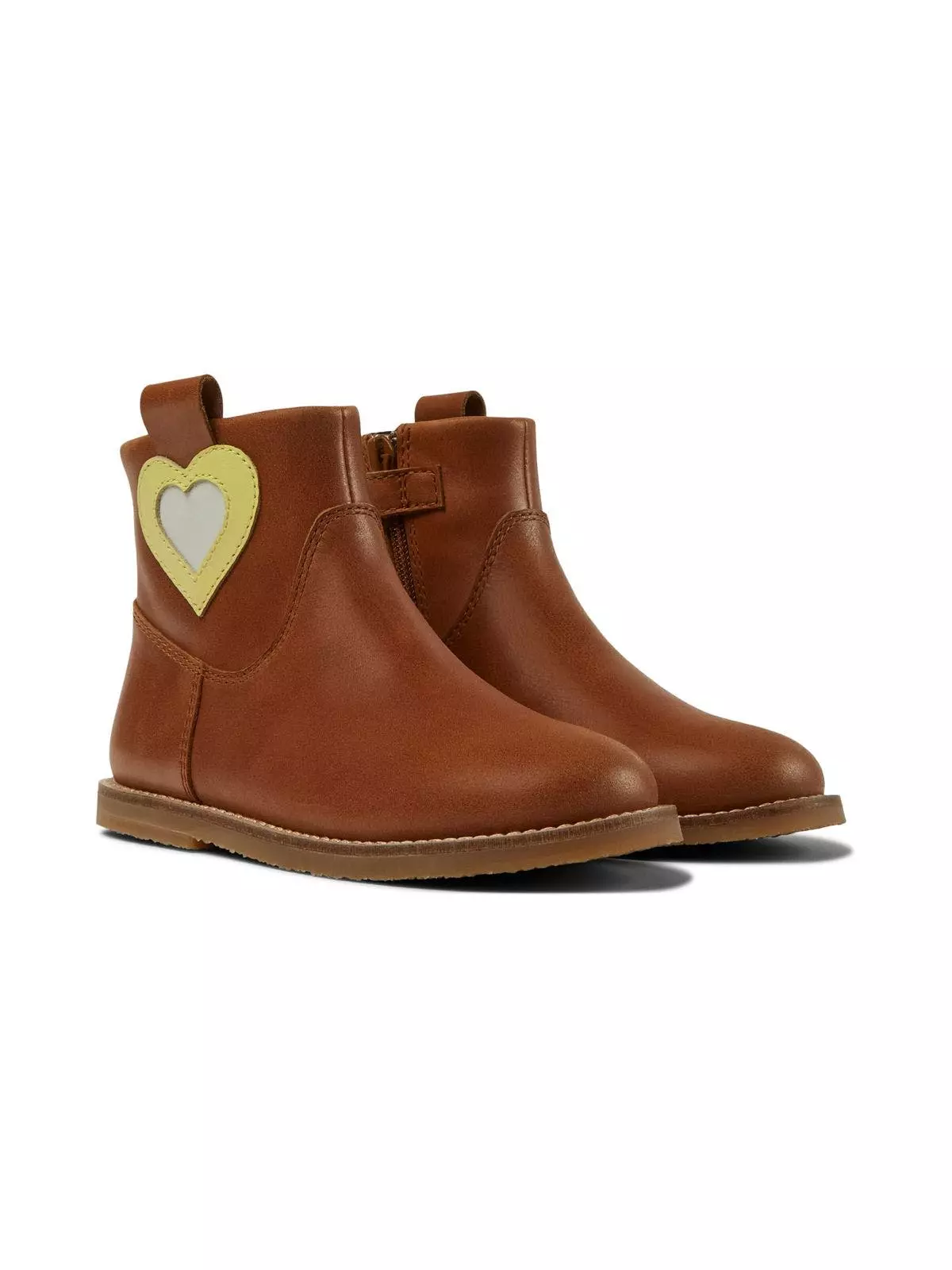 Brown leather boots for kids, with zip-up closing system, OrthoLite® footbed and 100% rubber outsoles.Born in 1988, classic TWINS concept – opposite yet complementary – challenges the idea that shoes must be identical and lives on in these mismatched kids´ shoes to form a truly unique pair.