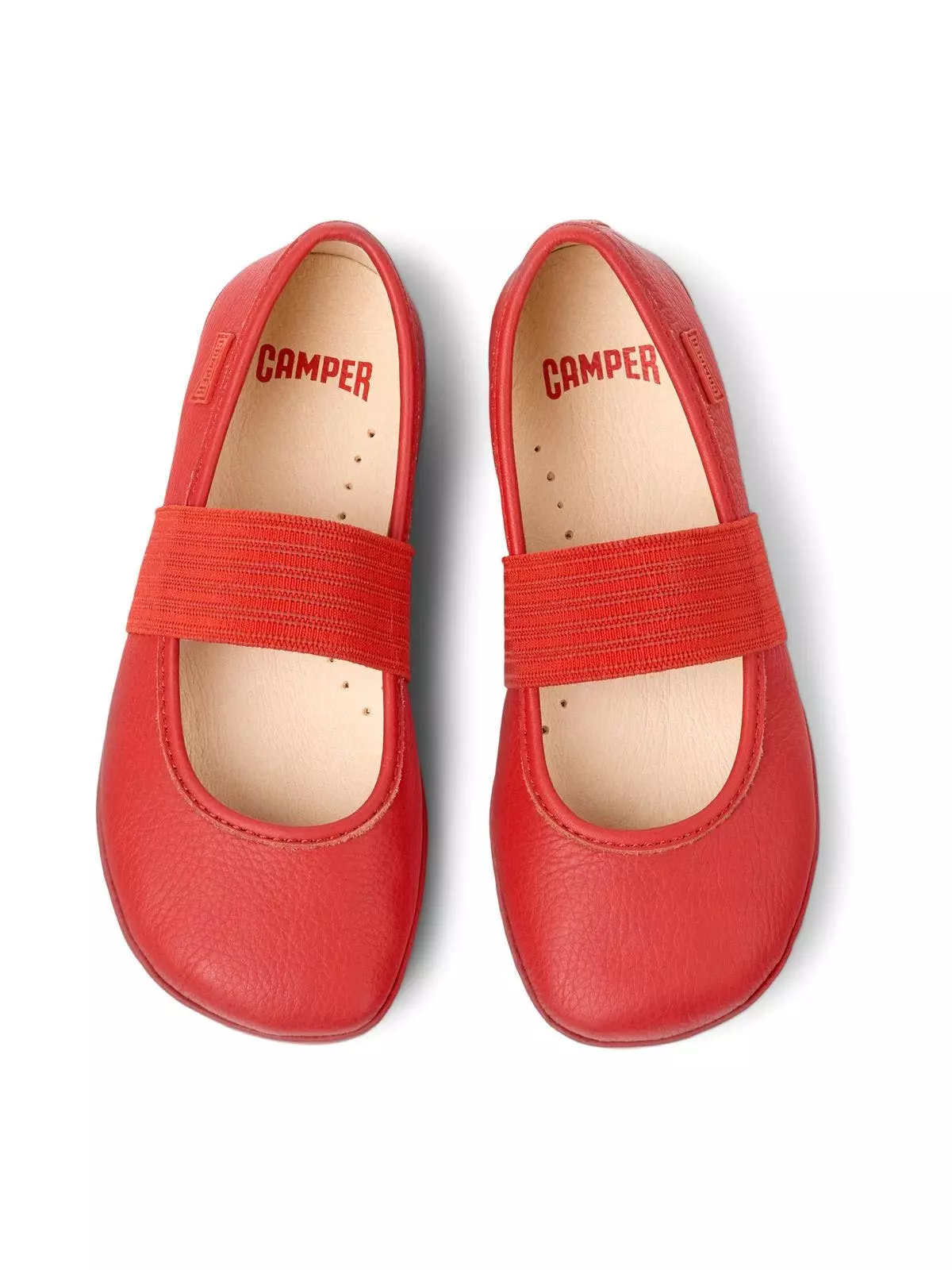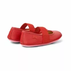 Red leather kid’s ballerinas with elastic band, removable EVA footbeds, and rubber outsoles (20% recycled). This Right girl’s ballerinas feature a playful shape and a flexible elastic strap that ensures these slipper-inspired flats won’t slip off.