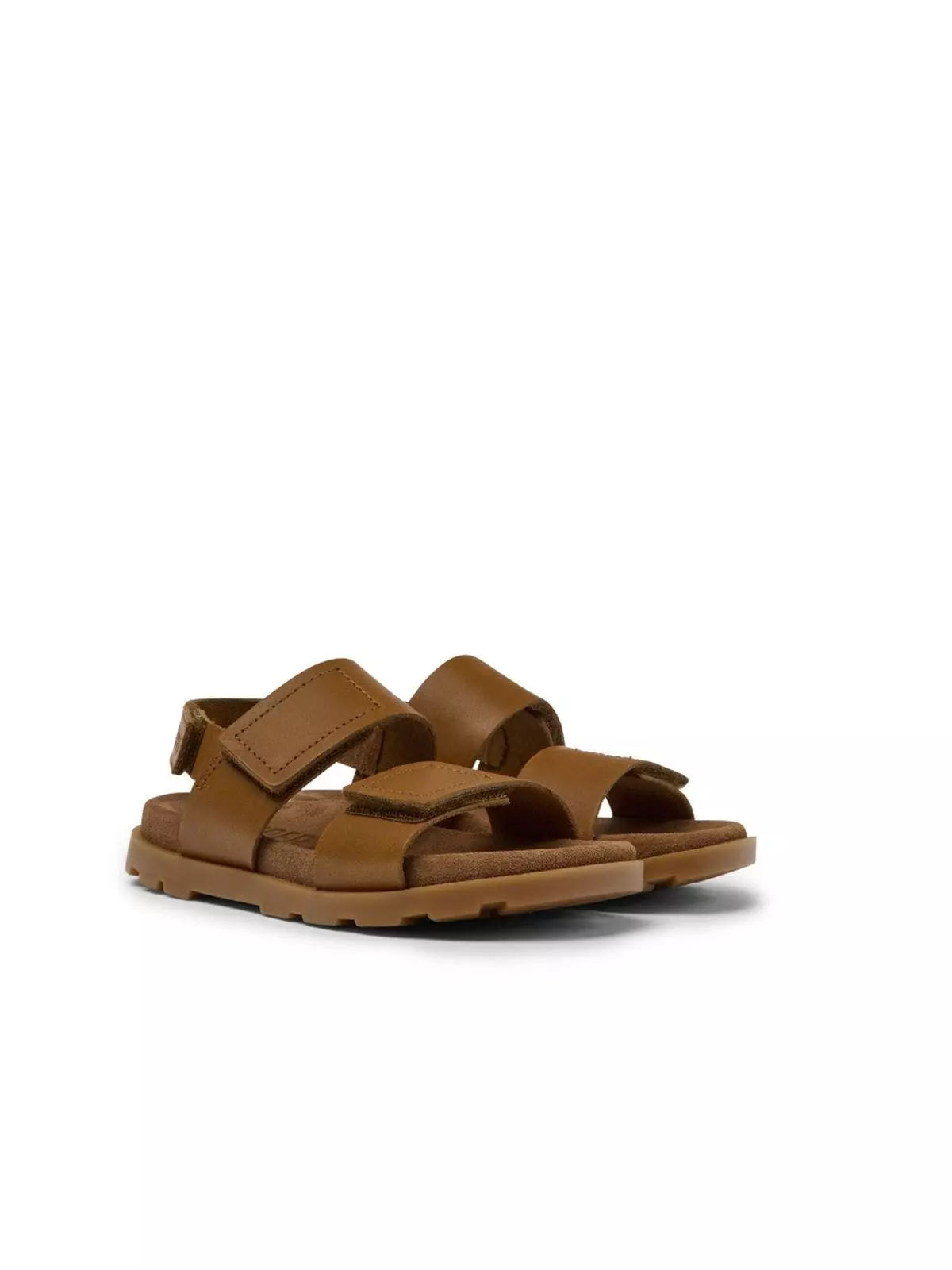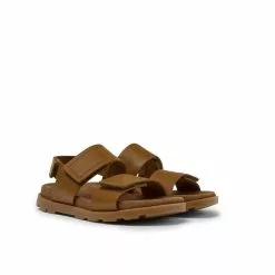 Brown leather kids’ sandals with hook-and-loop closing system and 100% rubber outsoles. Inspired by the legendary Brutus, Brutus Sandal for kids features a robust design and exceptional grip to make it durable enough for any summer explorer.