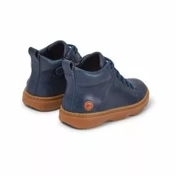 Blue leather ankle boots for kids with OrthoLite® removable footbed and 100% rubber outsoles (20% recylced).Kiddo offers a fresh look that’s extra comfortable and practical thanks to its durable design.