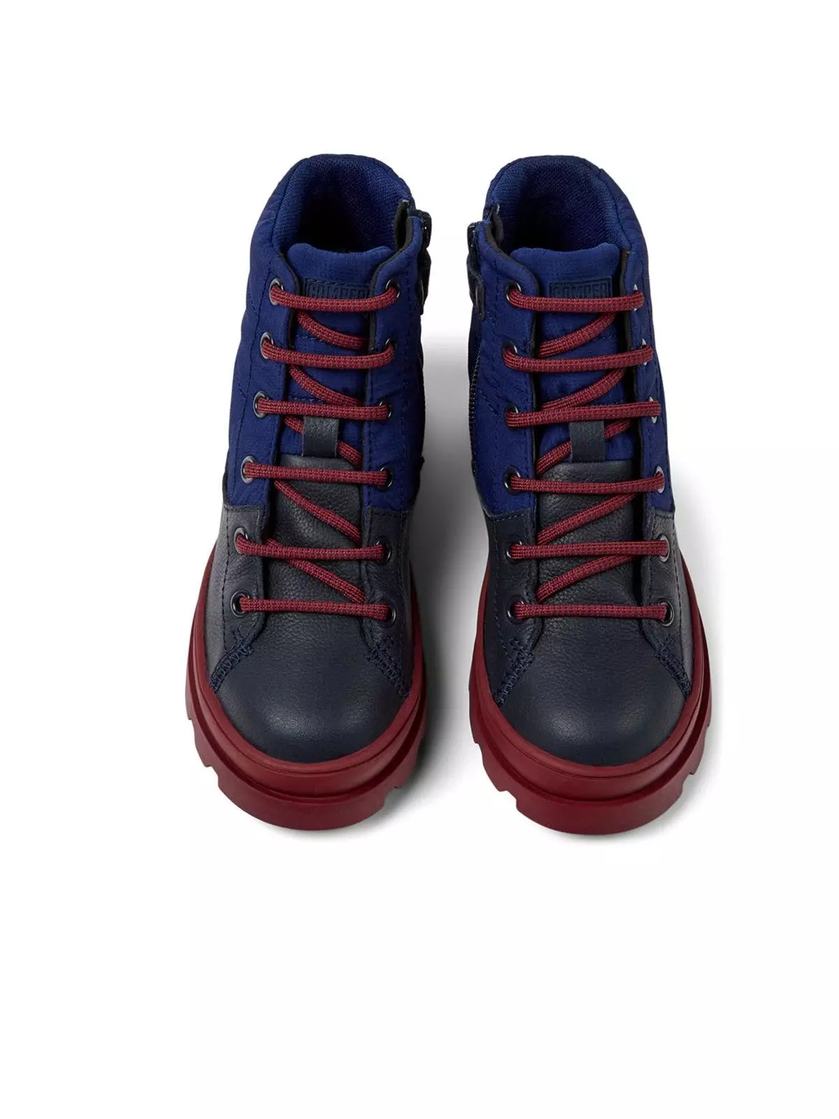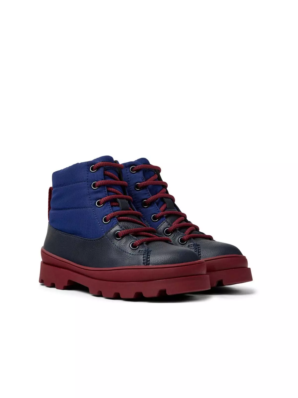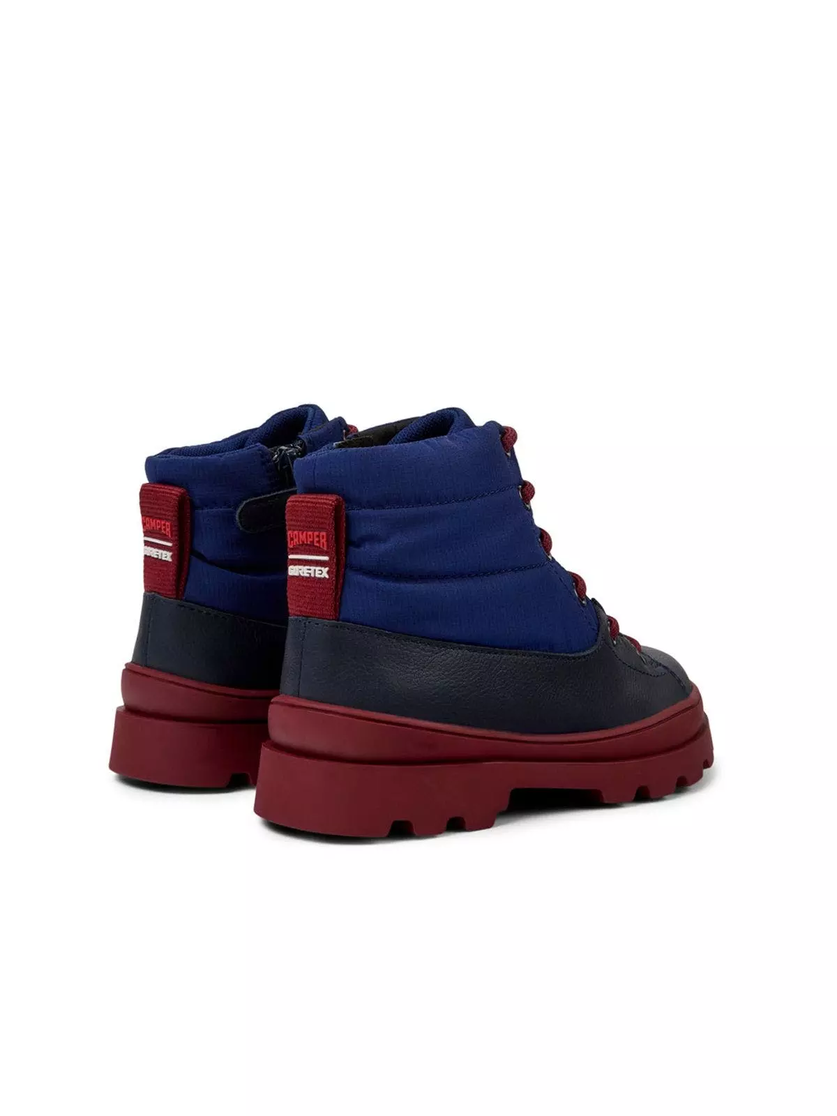 Blue leather and recycled polyester boots for kids with GORE-TEX technology and 100% rubber outsoles.Brutus for kids with its robust urban design and exceptional grip is durable thanks to its 360° stitching.