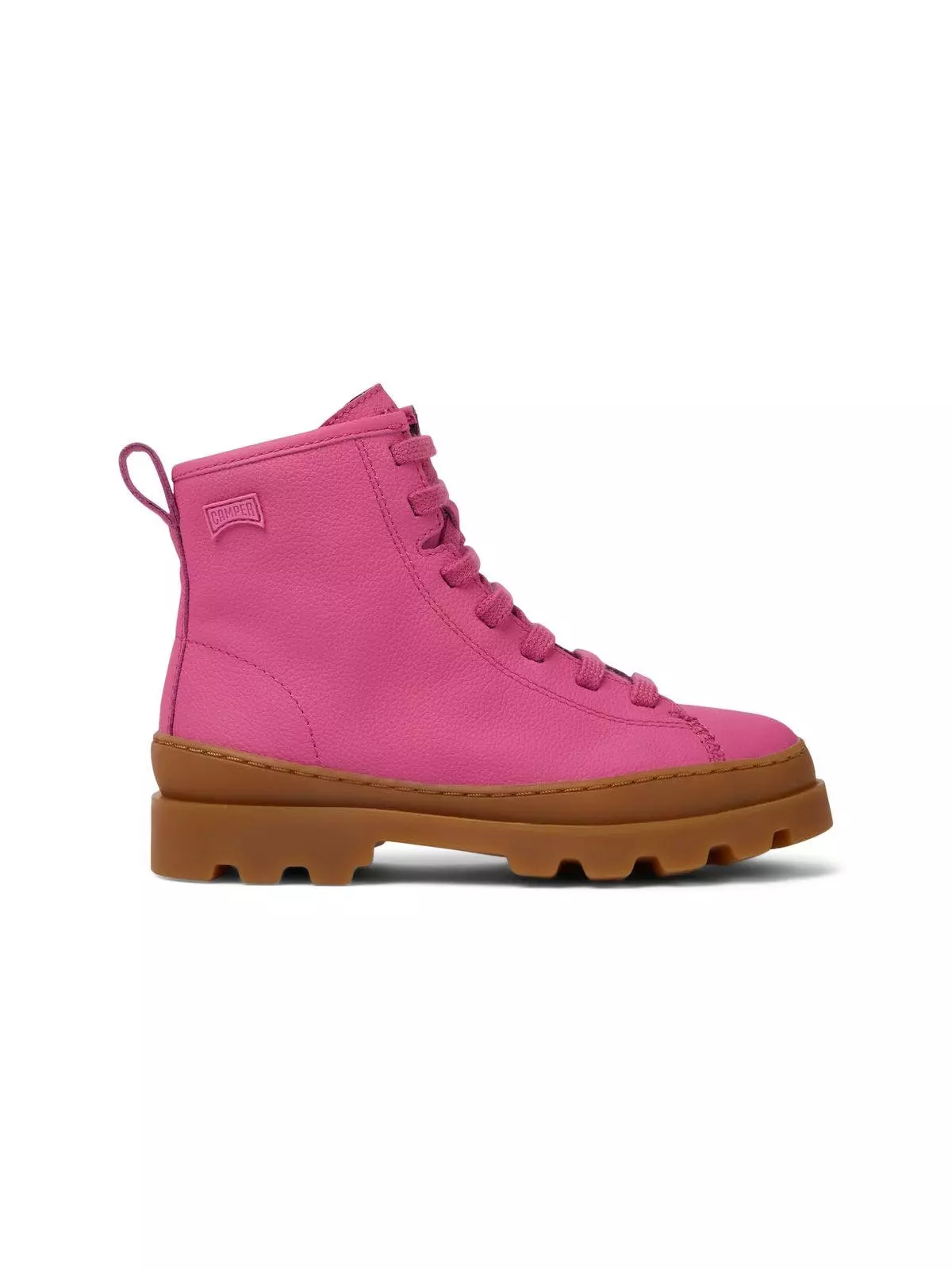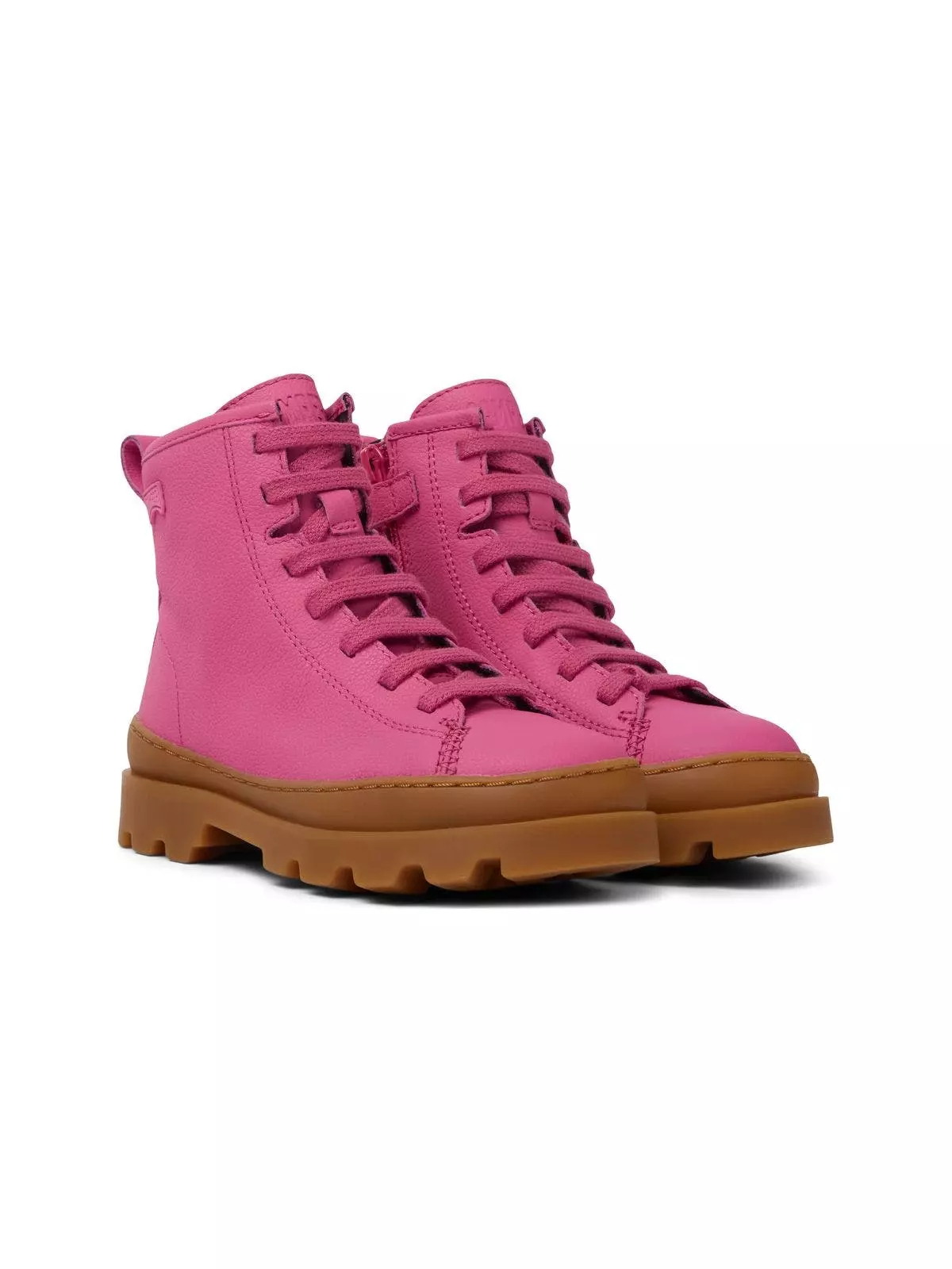 Pink leather lace-up boots for kids with OrthoLite footbed and 100% rubber outsoles.Brutus for kids with its robust urban design and exceptional grip is durable thanks to its 360° stitching.