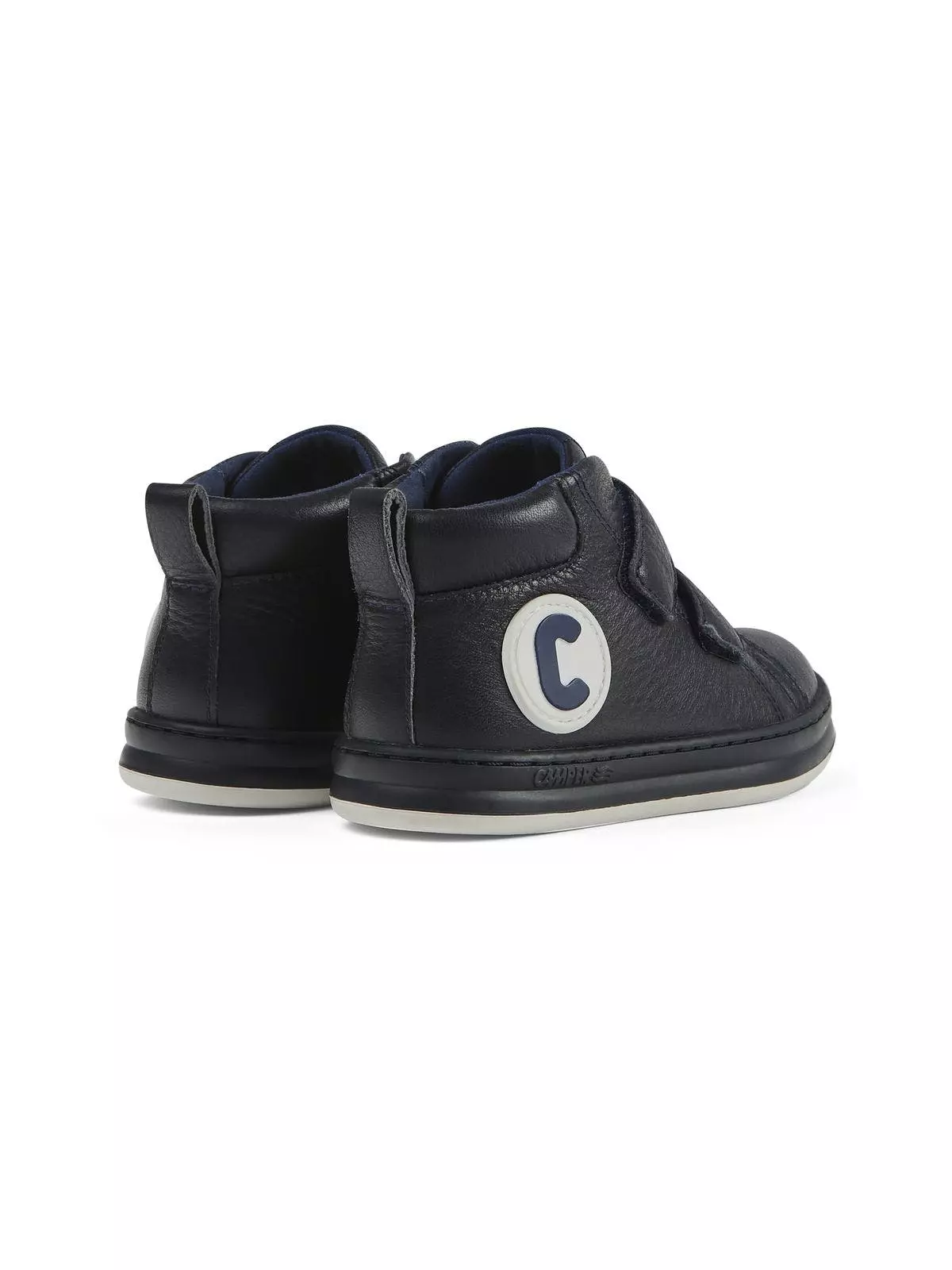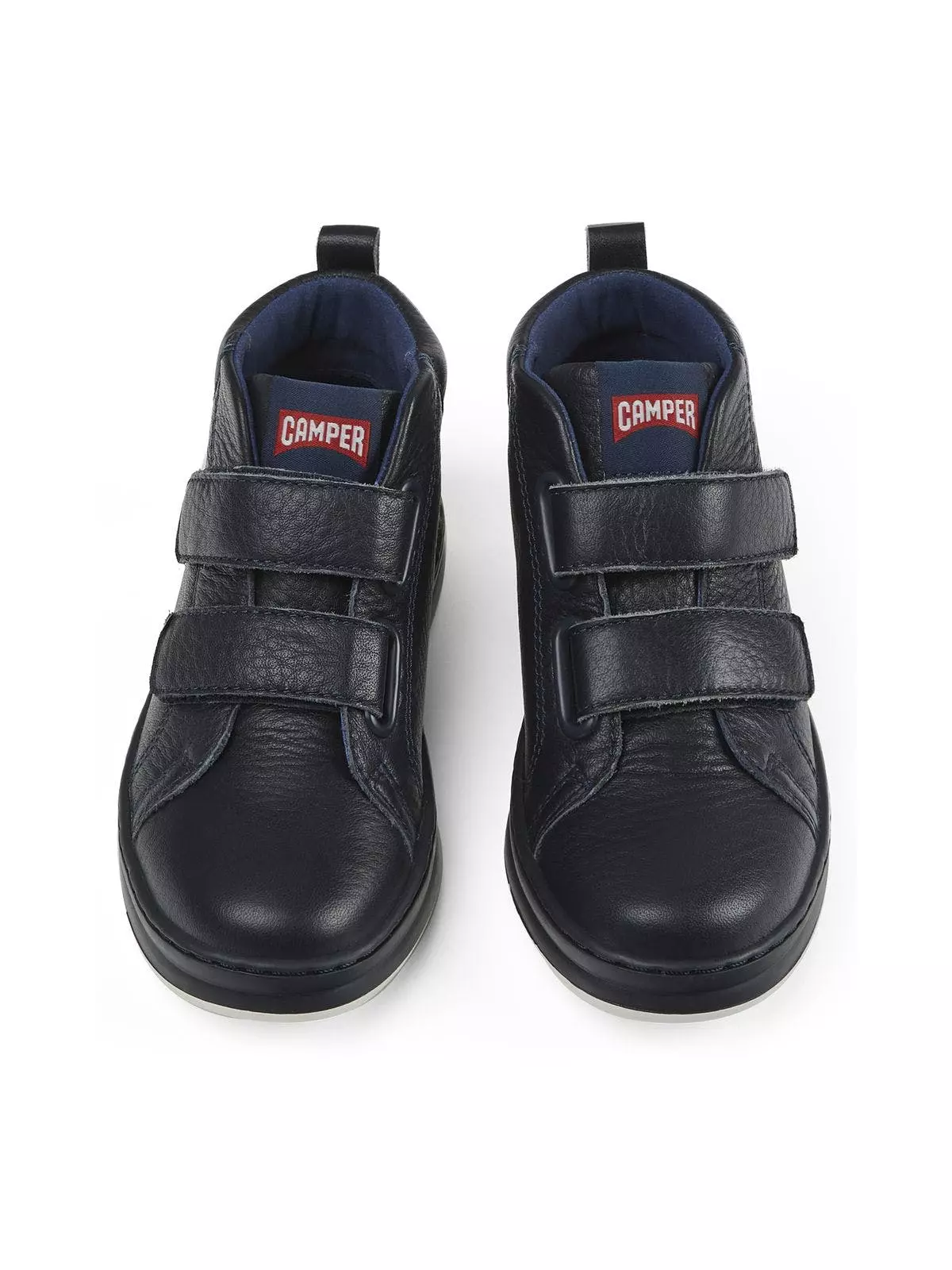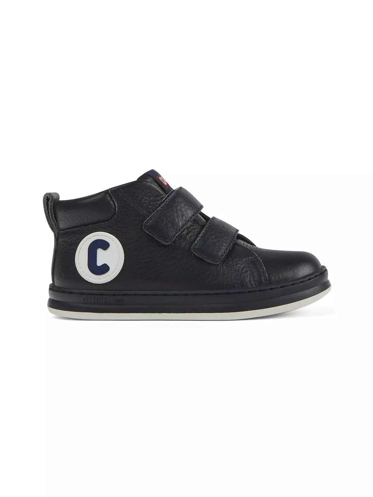 Dark blue leather sneakers for kids with Hook & Loop closing system, OrthoLite® removable footbed and 100% rubber outsole.This Runner kids’ sneakers are a miniature version of our original sport style that was born in 1992.