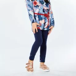 Floral print cuffs add distinctive style to this Cut and Sew Cotton Legging Red and Navy. Soft and stretchy in organic cotton, these leggings feature a comfy pull-on fit with a stretch elastic waistband and a logo patch at the hem.
