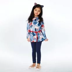 Floral print cuffs add distinctive style to this Cut and Sew Cotton Legging Red and Navy. Soft and stretchy in organic cotton, these leggings feature a comfy pull-on fit with a stretch elastic waistband and a logo patch at the hem.