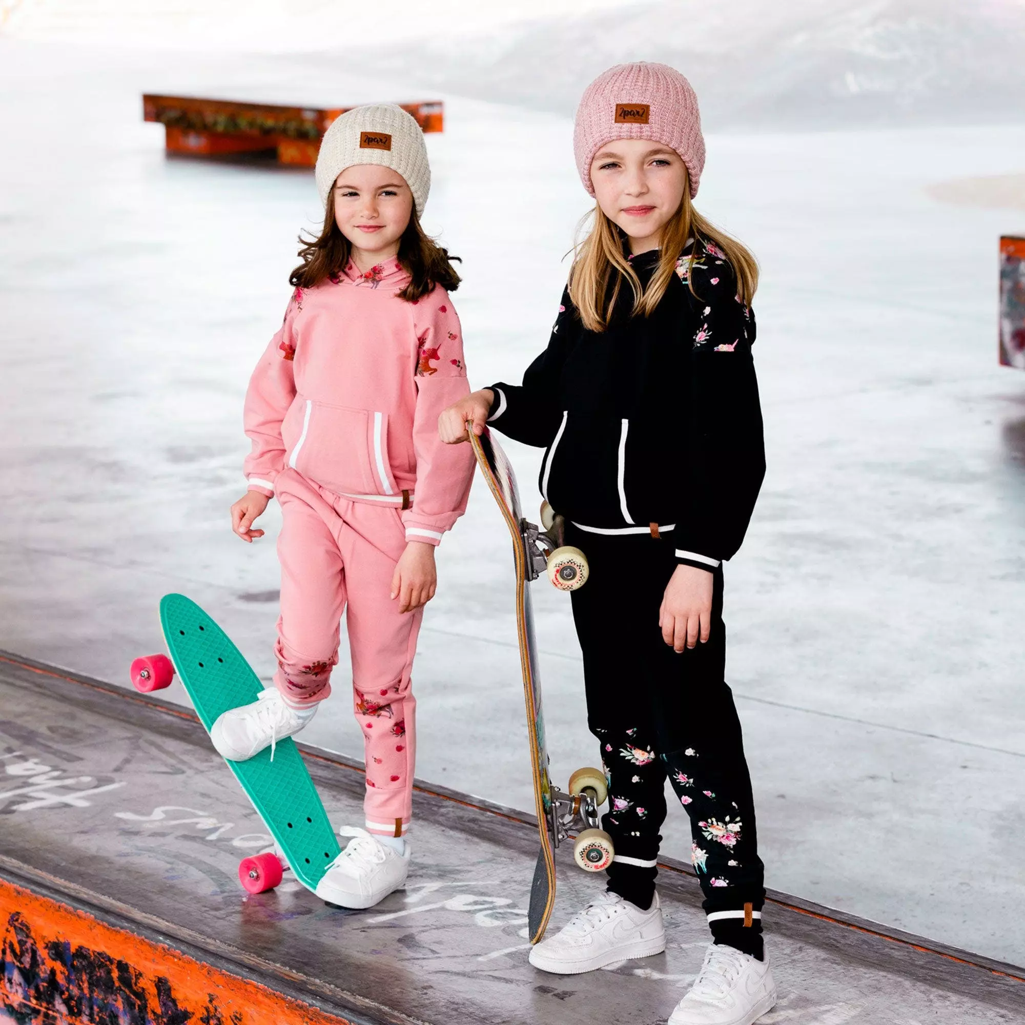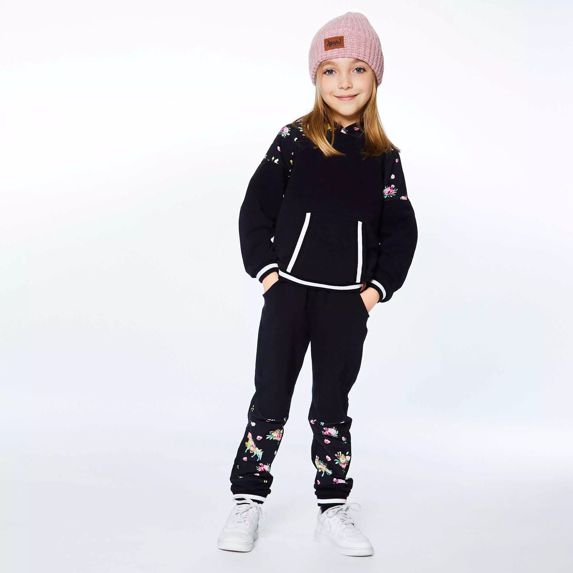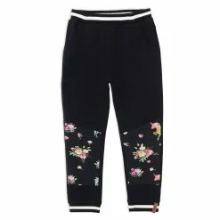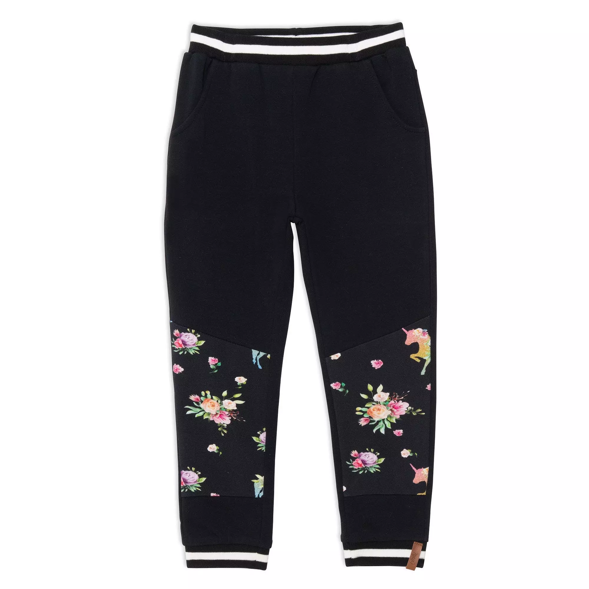 Unicorns and flowers impart sweet style upon these sporty sweatpants. The Cut and Sew Sweatpant Unicorn Print is made from stretch cotton and features a striped elastic waistband, printed knee panels with seamed details, front pockets, and striped rib knit cuffs at each ankle.