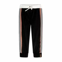 Unicorns and flowers impart sweet style upon these sporty sweatpants. The Cut and Sew Sweatpant Unicorn Print Pink is made from stretch cotton and features a striped elastic waistband, printed knee panels with seamed details, front pockets, and striped rib knit cuffs at each ankle.