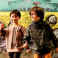 This Fleece Top With High Neck and Pocket boasts one-of-a-kind style in an allover geometric animal print. This cotton sweatshirt features a pullover silhouette with a high neckline, long sleeves, and a vertical zipper pocket. He can pair it with jeans, twill joggers, or any of his favorite solid sweatpants.