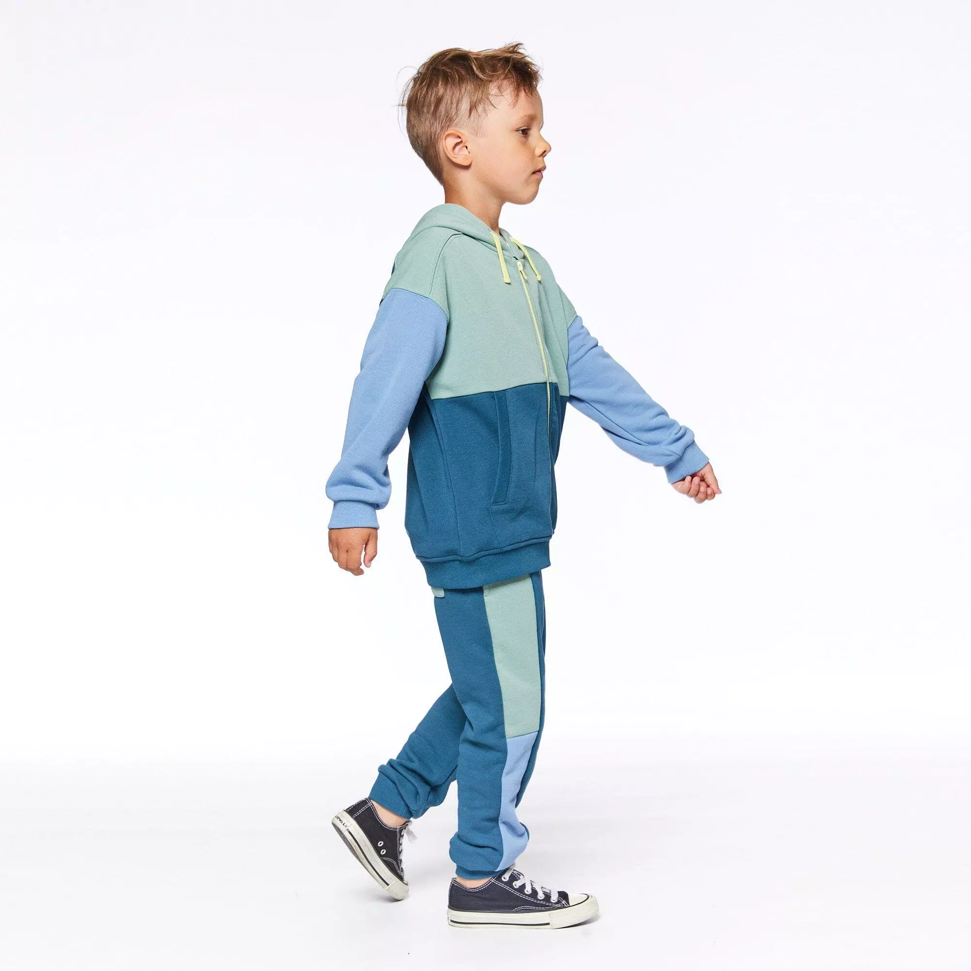 French Terry Sweatpants Greyish-Green, Teal and Blue are the perfect blend of style and comfort. These jogger pants are made from a soft cotton/poly blend.