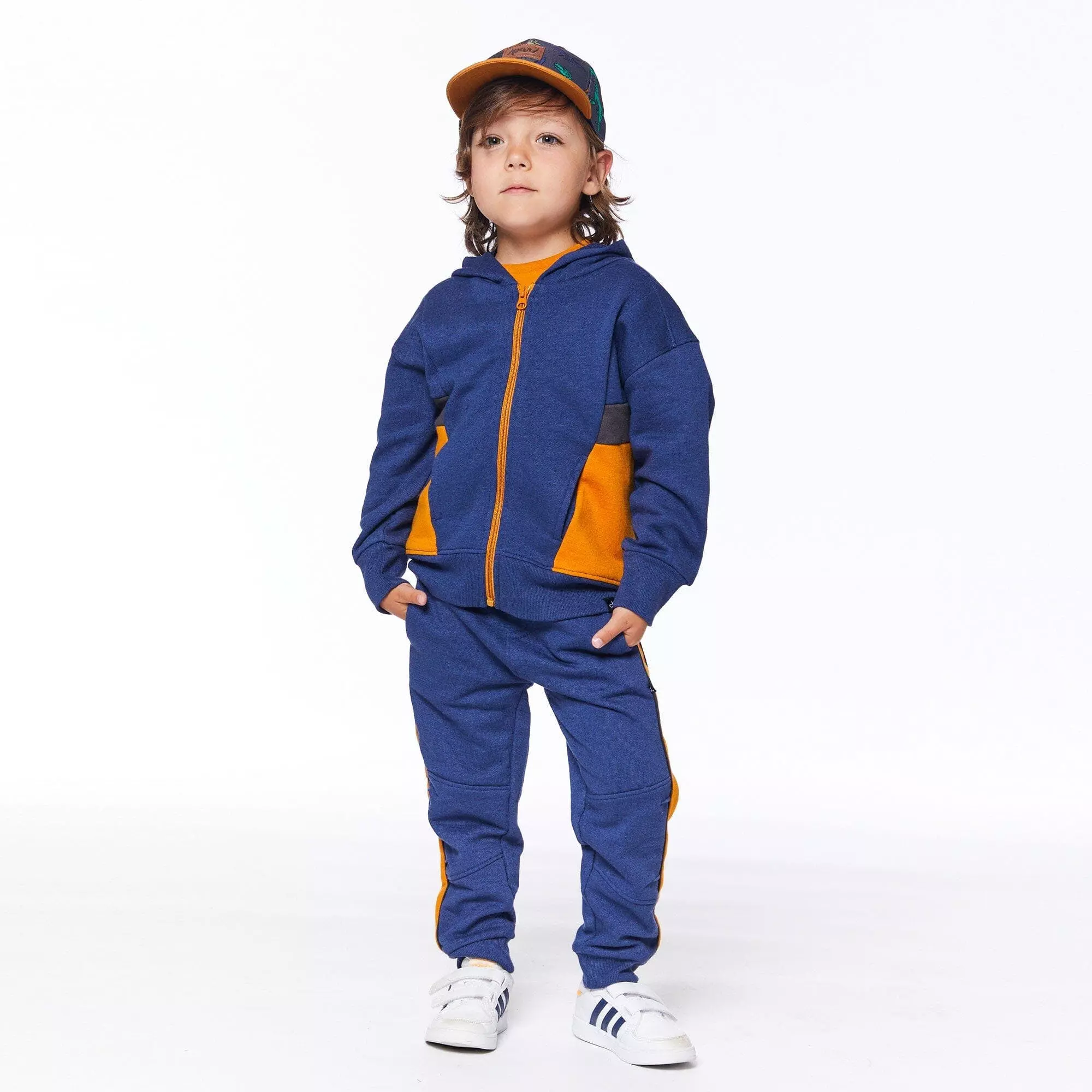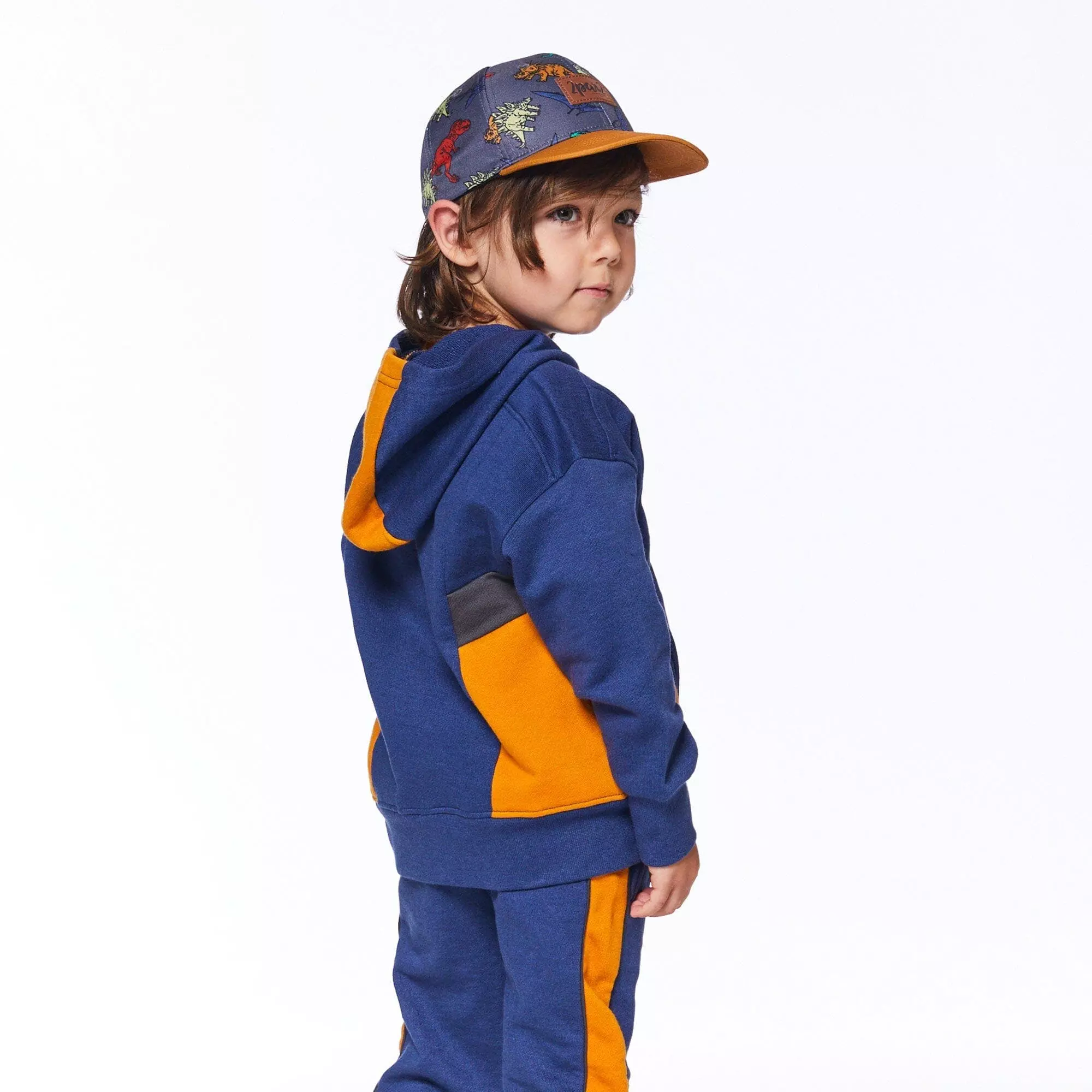 Colorblocked with contrast inserts, Hooded French Terry Cardigan Navy Blue and Golden Yellow is sure to become his favorite new spring layer.