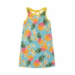 Little ones can cover up in style in this Printed Beach Dress Blue Pineapple. Simply adorable in a colorful blue and yellow pineapple print, this swim dress features a shift silhouette with wide straps, a scoop neckline and a cut out back with strappy details. In recycled Repreve® fabric, it has a upf 50+ rating to provide maximum UV protection.