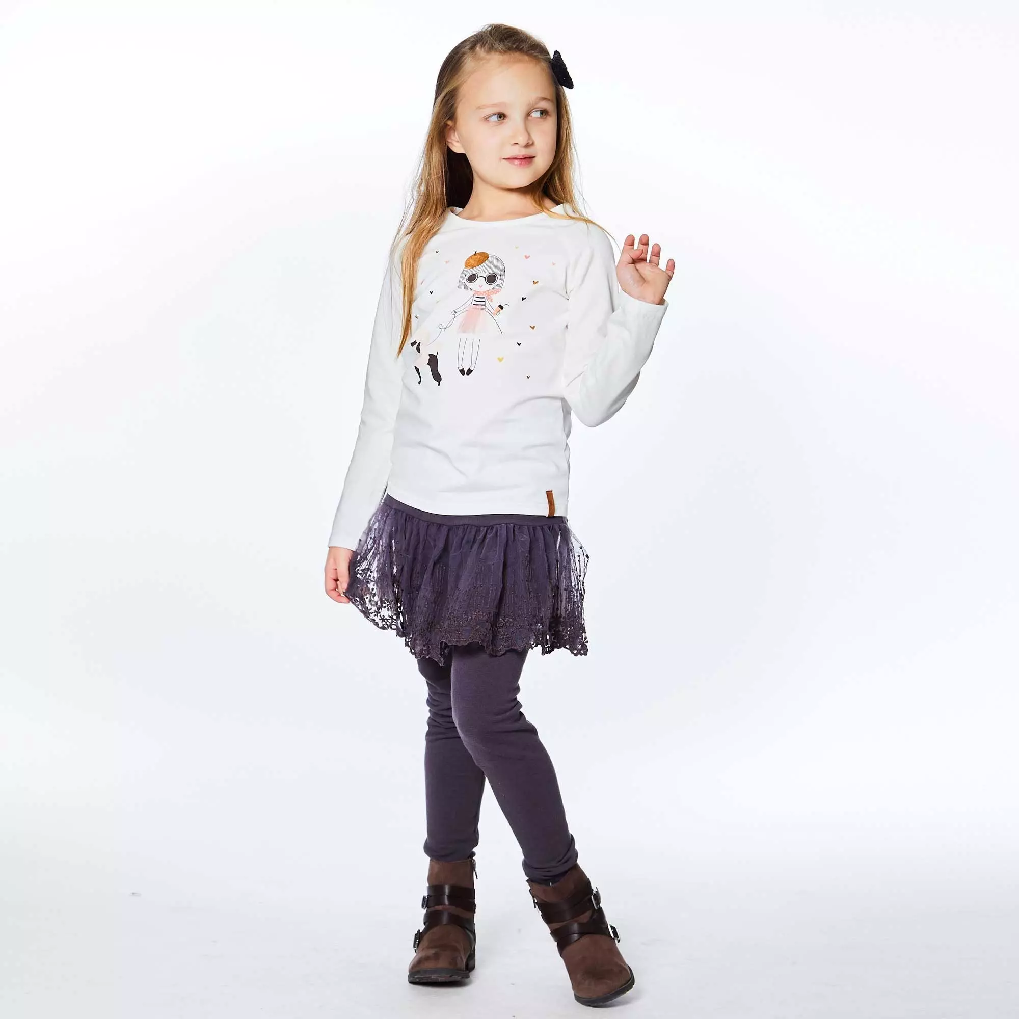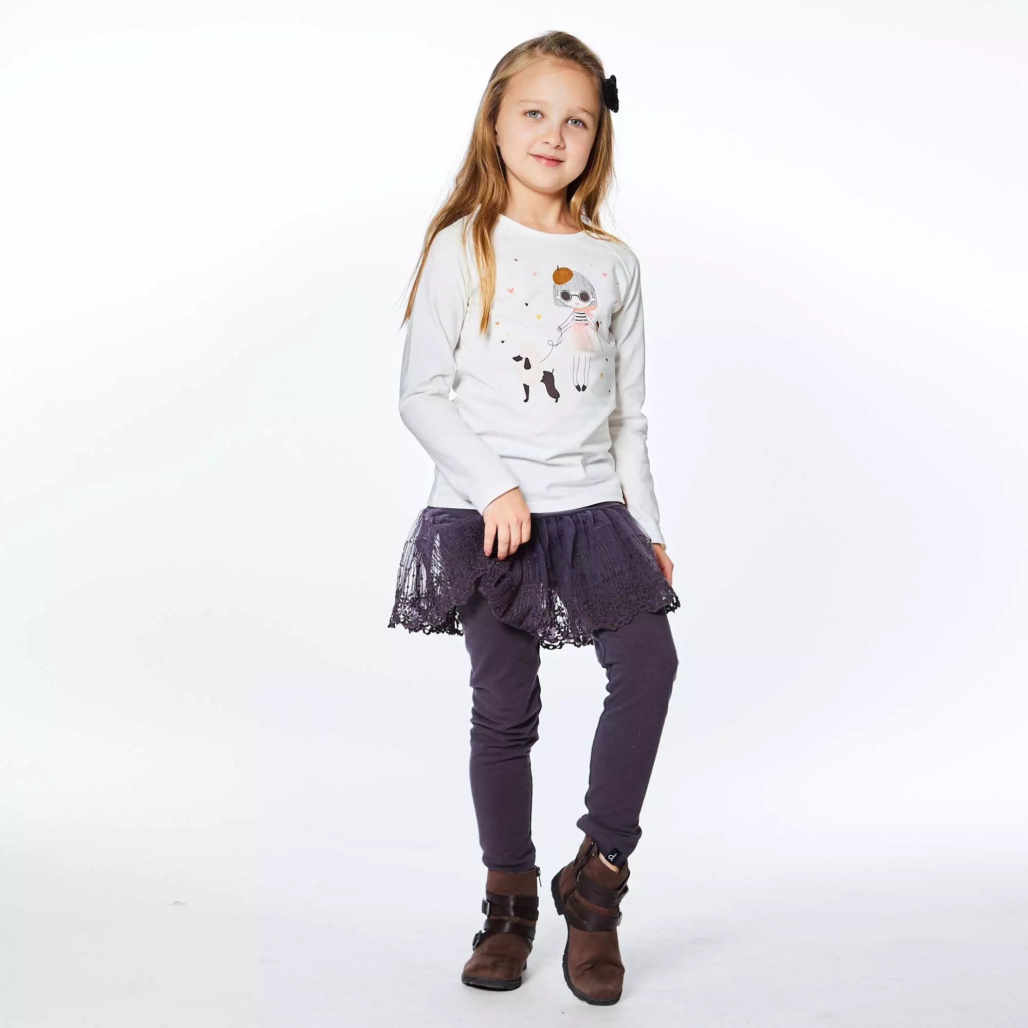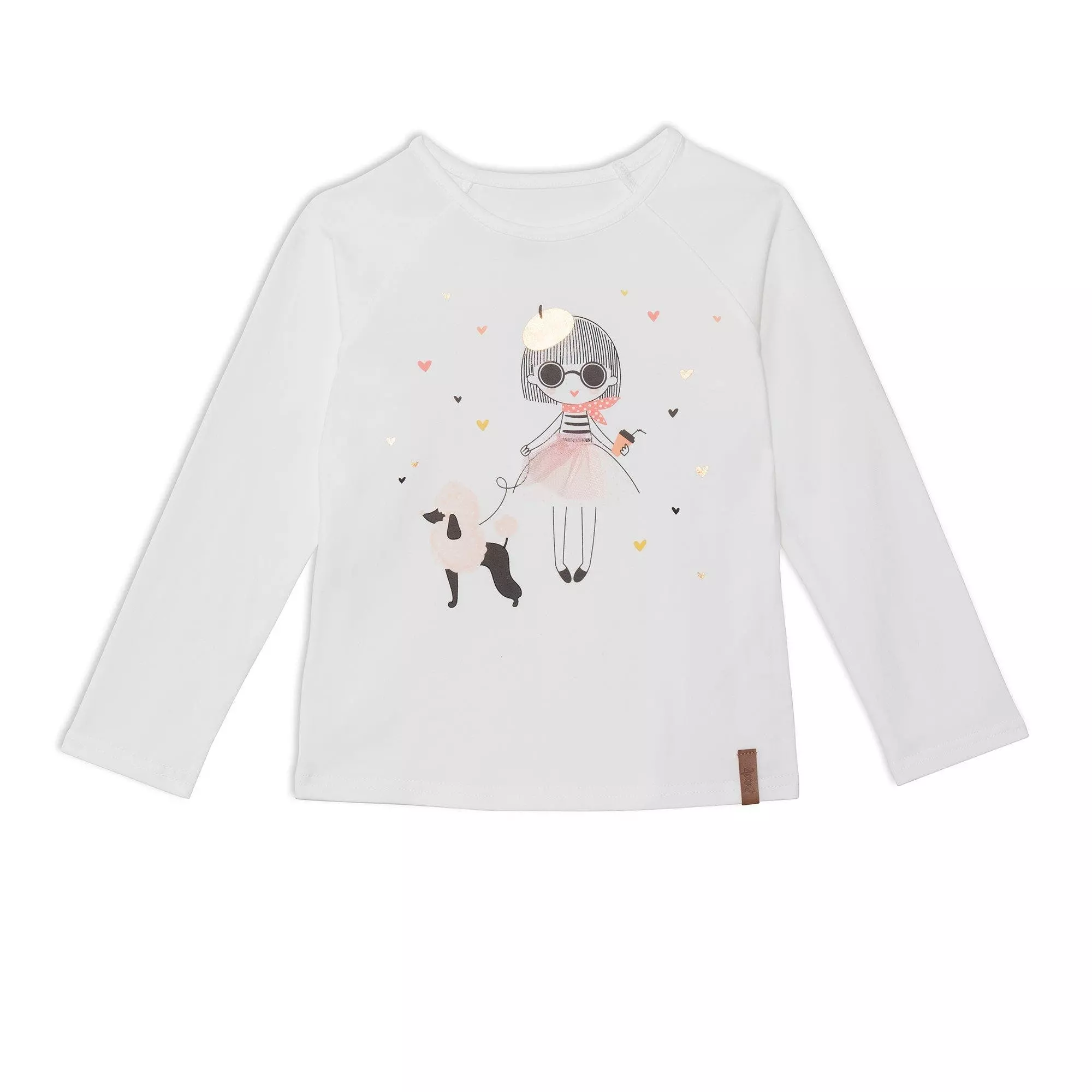 A novelty puppy print lends a sweet touch to striped long raglan sleeve top.