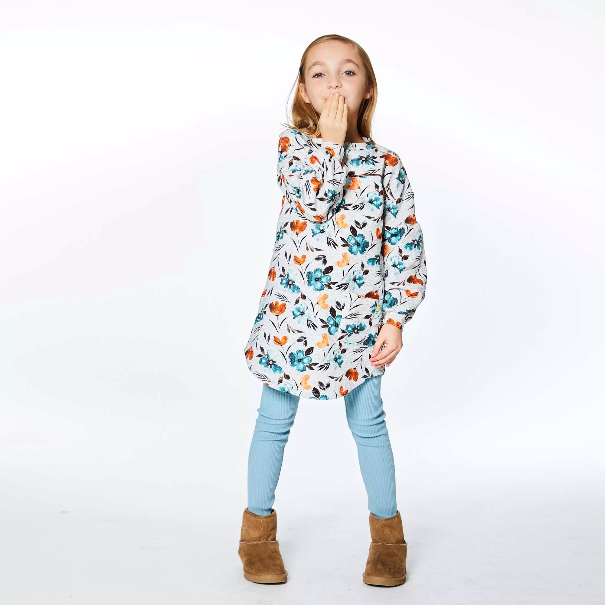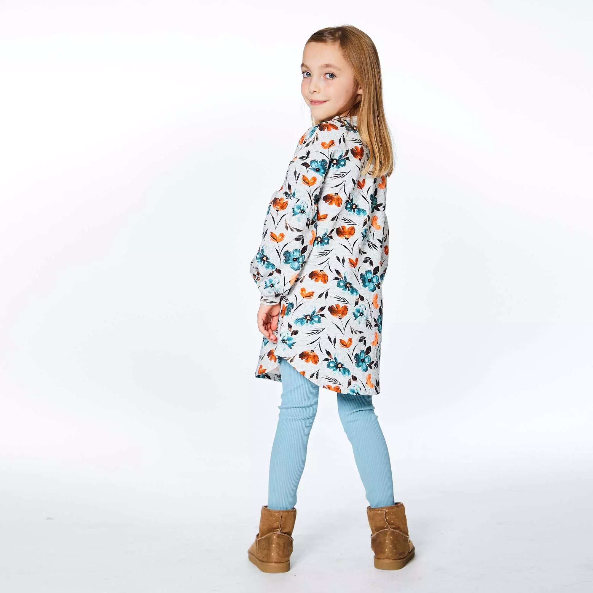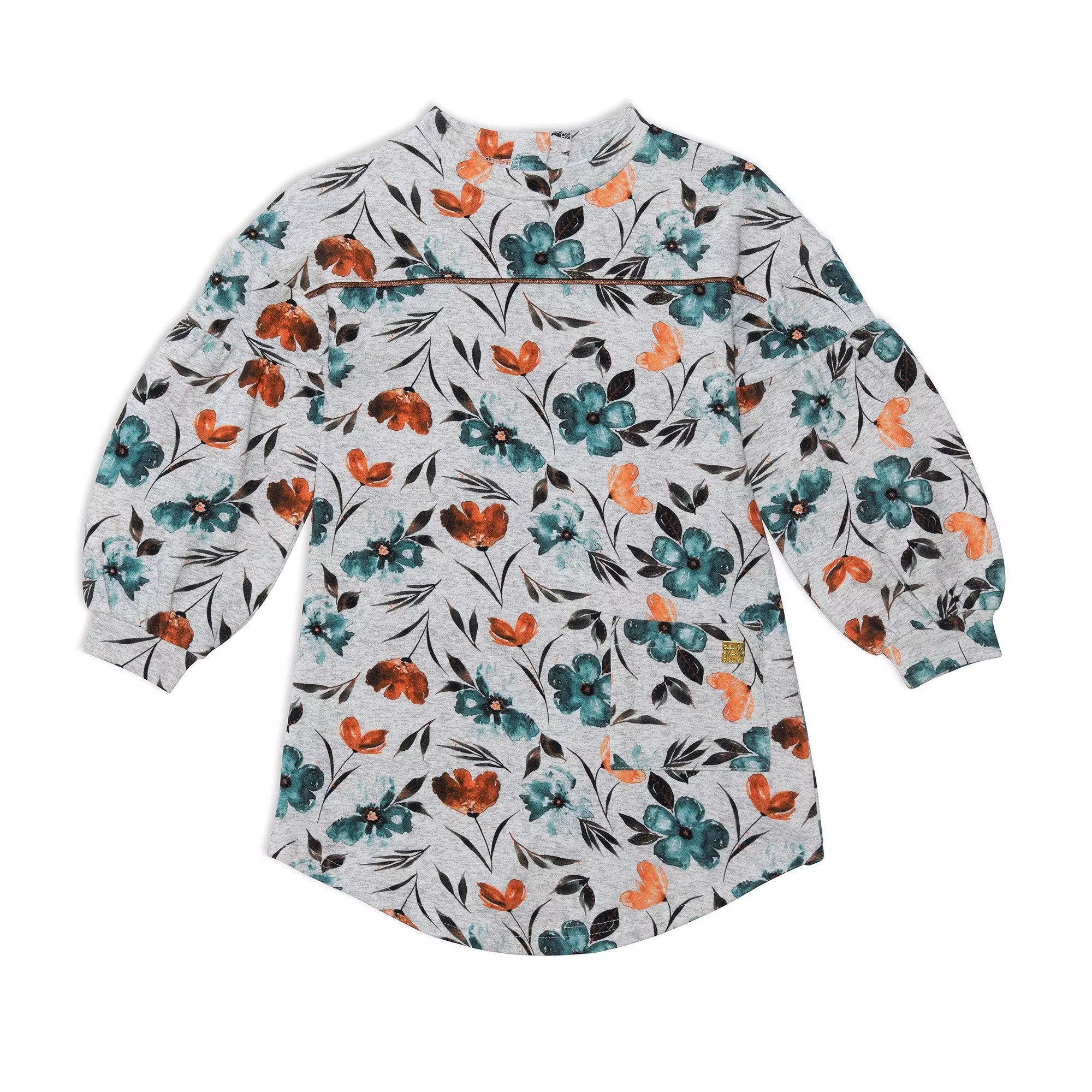 Balloon sleeves with dropped shoulders add a unique twist to this Printed Long Sleeve Dress With Watercolor Flowers. This cotton/poly dress features long sleeves, a crew neckline, contrast piping across the chest, and a rounded hem. Team it with solid leggings and boots for the perfect head to toe look.