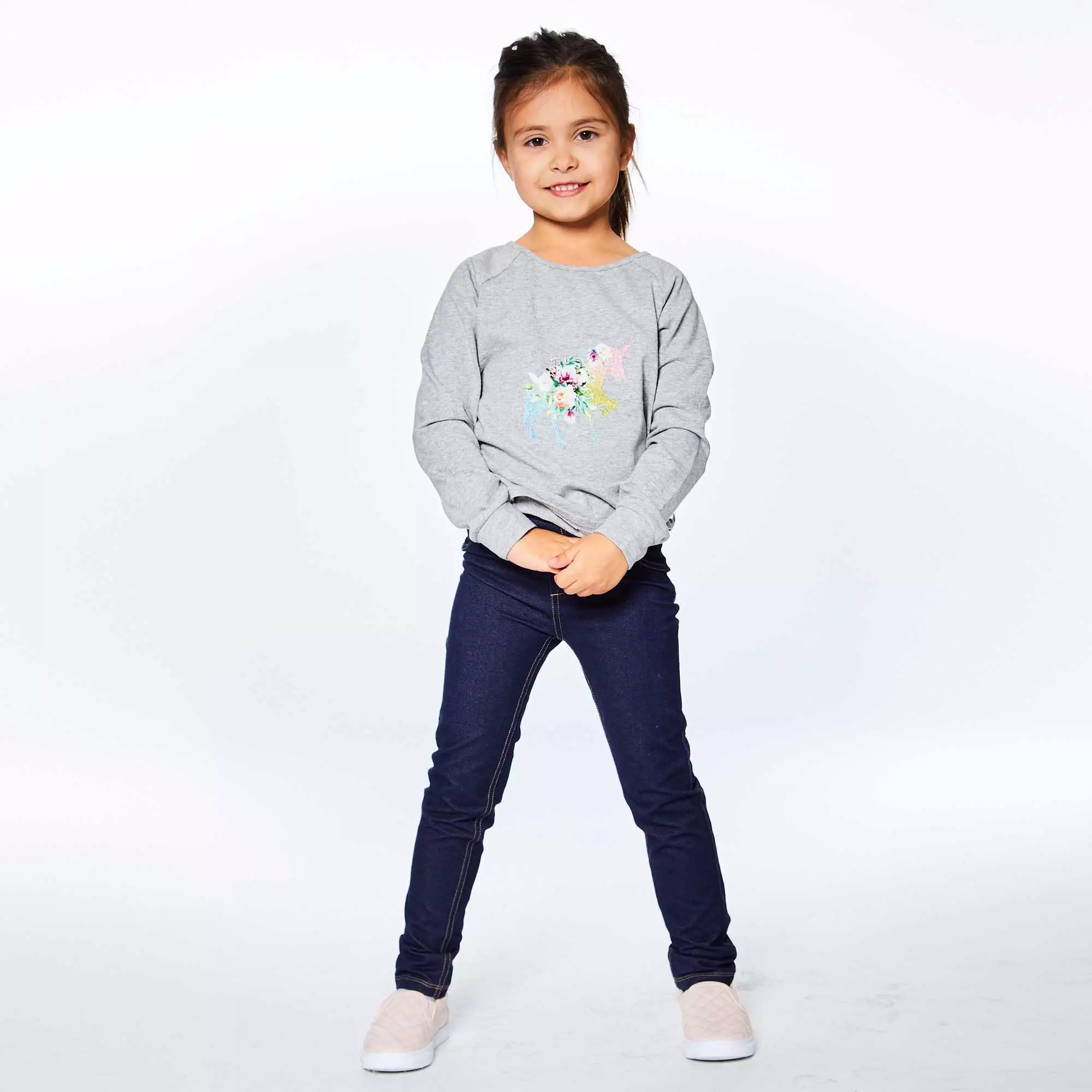 Unicorn graphics lend ultra-sweet style to this comfortable cotton tee. This Printed Long Sleeve Raglan Top features a round neckline and a small logo label at the hem. It’s perfect for pairing with a variety of different bottoms and looks absolutely adorable layered beneath a jumper dress.