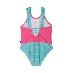 The Deux Par Deux Printed One Piece Swimsuit Pink & Green Tropical Flowers boasts cool, colorful style with floral accents, palm leaves, a pineapple, and contras deux par deuxting stripes. This swimsuit is made from recycled repreve fabric with a upf 50+ sun protection rating. It’s detailed with a scoop neckline and triple straps that add a distinctive touch.