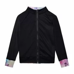 Offering two looks in one, this reversible jacket is equal parts sporty and chic. Printed Reversible Athletic Vest Multicolor Flowers and Black features long sleeves, a zip front closure and a stand up collar. One side features a colorful flower print, while the other side is solid black.