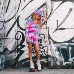 With a colorful wave print, this pull-on short adds vibrant style to any little girl’s wardrobe. The Printed Short With Pocket Multicolor Waves boasts a comfortable fit with a stretch elastic waistband, scoop pockets, and an allover print. Pair with a matching hoodie for a perfectly coordinated set.