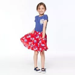 In a flared A-line silhouette, the Printed Skort With Bow Red Flowers offers ultra-girly style with some extra coverage underneath. Made from viscose/cotton, this design features a stretch elastic waistband, a bow at the waist, and scoop pockets. Attached biker shorts layered underneath make it perfect for the little girl who loves to run and jump and play.