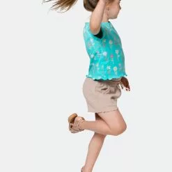 An allover flower print makes this comfy tee shirt perfect for any spring or summer day. Our Printed T-Shirt With Back Hole Turquoise Flowers is made from 100% cotton and features short sleeves, a round neckline, and a keyhole with a button closure at the back of the neck. Lettuce edging at the sleeves and hem adds an ultra-girly touch.