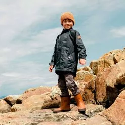 This Parka Black Texture offers cozy style on a chilly spring day. This jacket is made from recycled poly fabric with a poly lining in the body and a soft cotton knit lining in the hood. Water-repellent and coated for waterproofing, this jacket features an attached hood, a zip front closure, elastic cuffs, and a wind stopper placket for added protection against the cold.