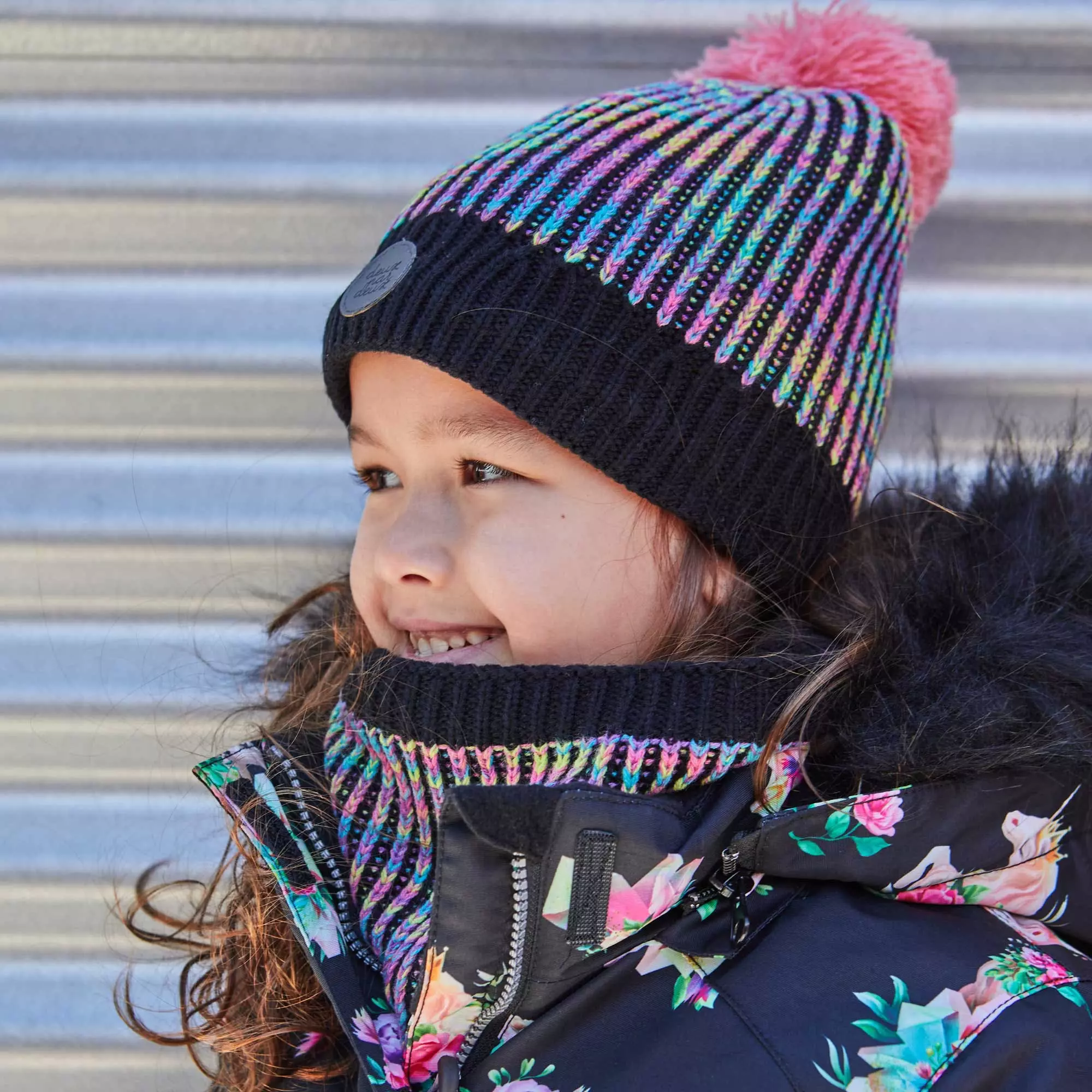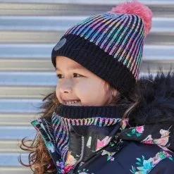 In a mix of colors, our Striped Knit Hat Purple, Green, Brown and White is a stylish way to warm up on a cold day. This hat is made from a soft poly/acrylic/wool/viscose blend and features a ribbed texture, a solid rib knit cuff, and a fluffy pompom on top.