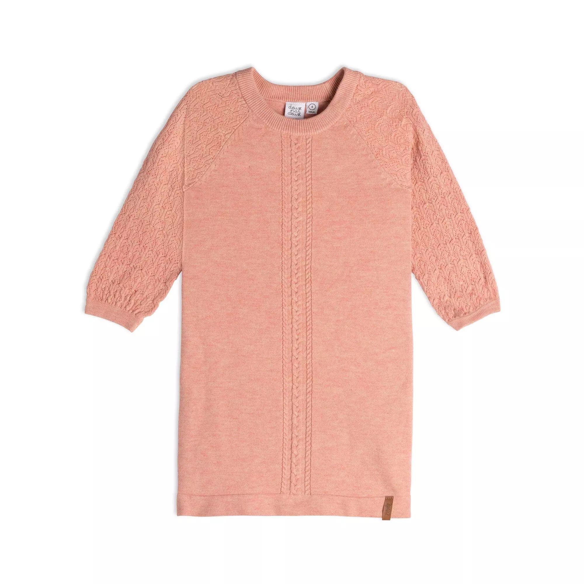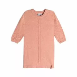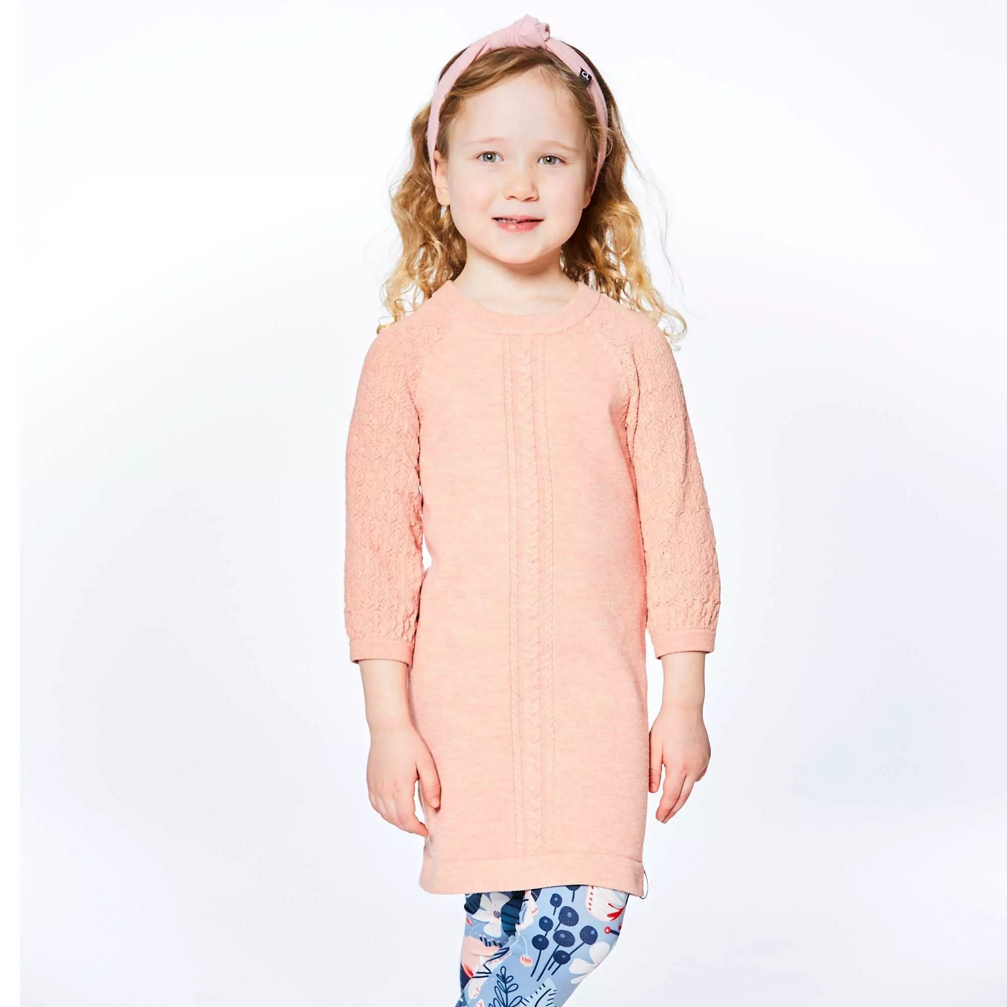 Vertical front cables make this Knitted 3/4 Sleeve Dress Light Pink a perfect choice on a chilly day. This pullover sweater dress is made from a poly/nylon blend and features raglan sleeves with a contrast stitch pattern, a round neckline, and a small logo label at the hem.