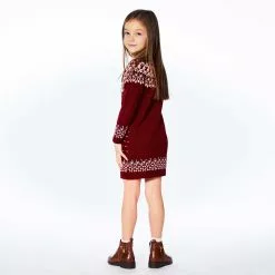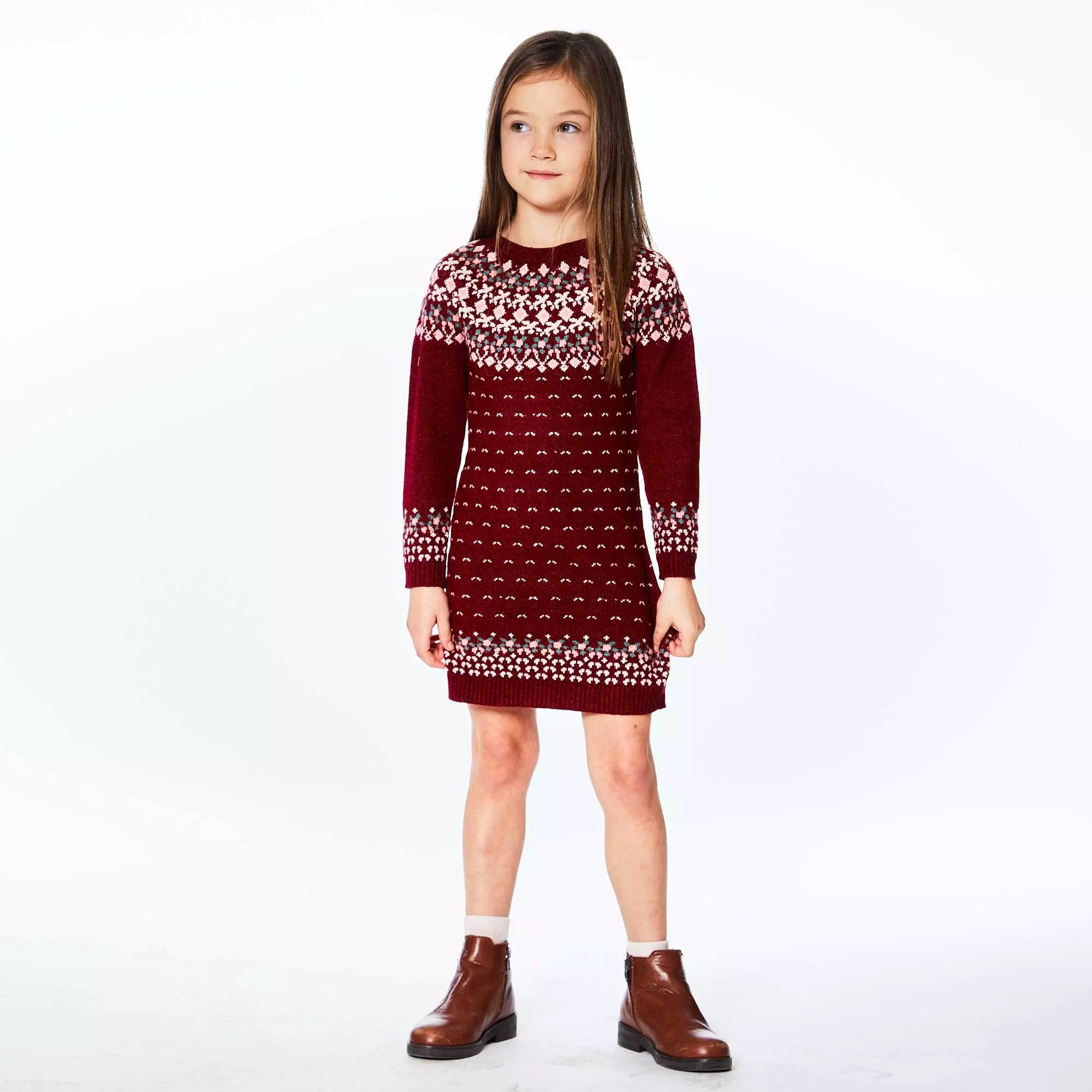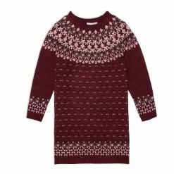 Make chilly fall and winter days a bit more stylish with our ski-inspired Knitted Long Sleeve Dress. This sweater dress is made from a soft viscose/poly/nylon blend and features a fairisle pattern across the chest and sleeves, a round neckline, and rib knit trim at the neck, cuffs, and hem.