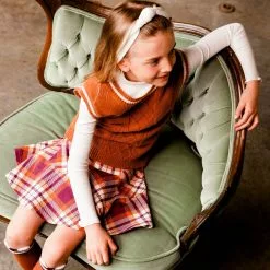 This Knitted Tank Ocher boasts a classic tennis-inspired vibe in a sleeveless silhouette with contrast tipping. Soft and cozy in an acrylic/nylon/poly blend, this sweater vest features a deep scoop neckline, textured stitching down the front, and rib knit trim.