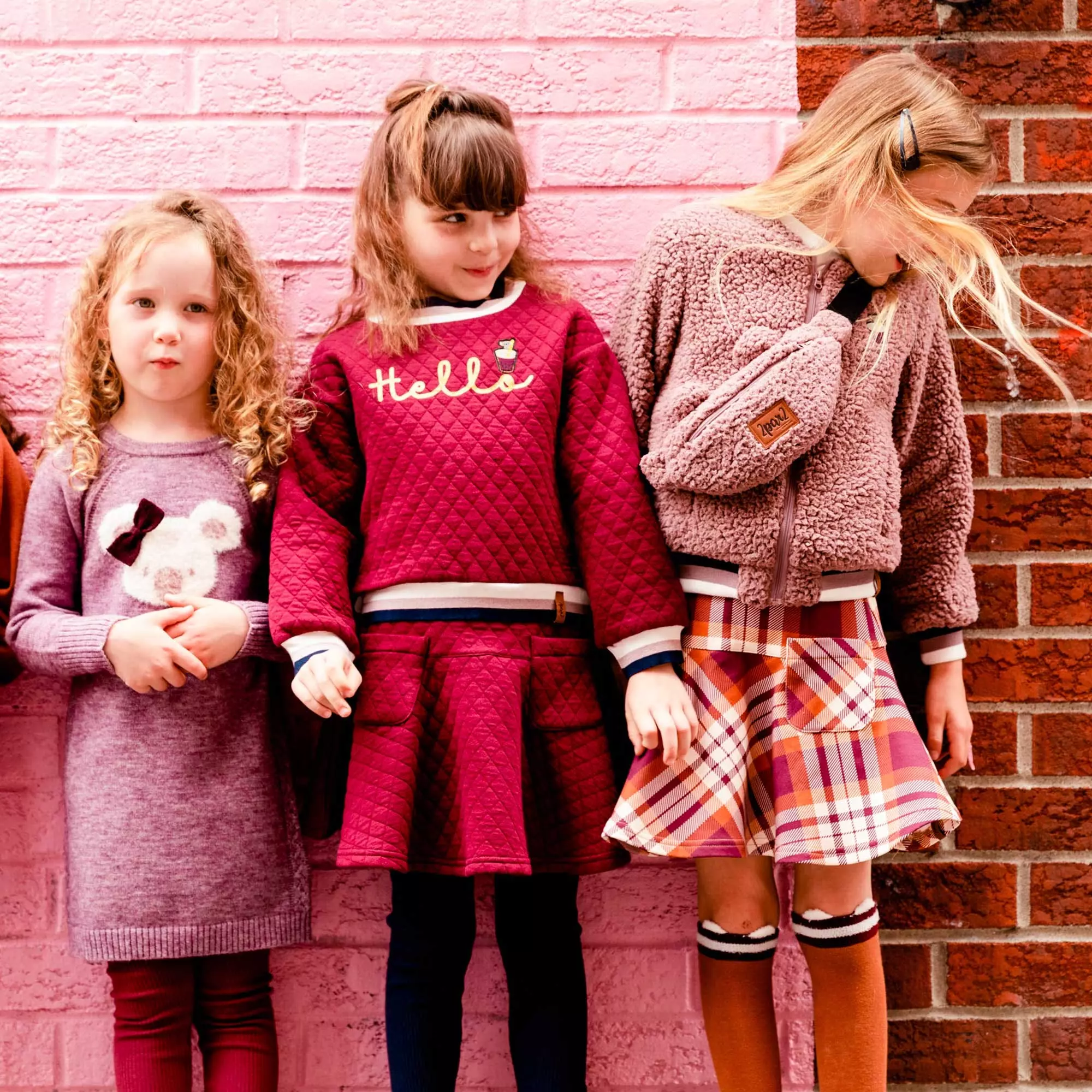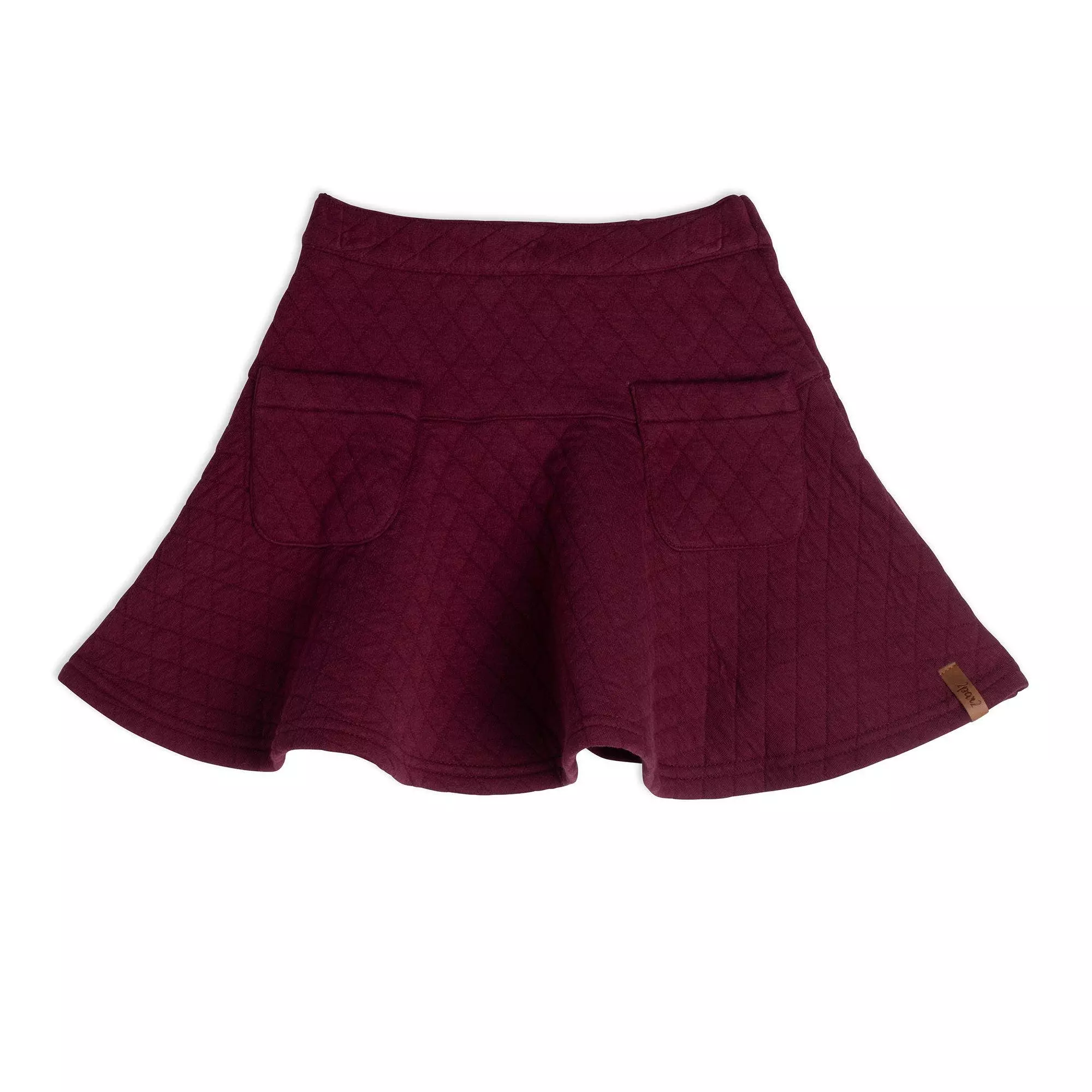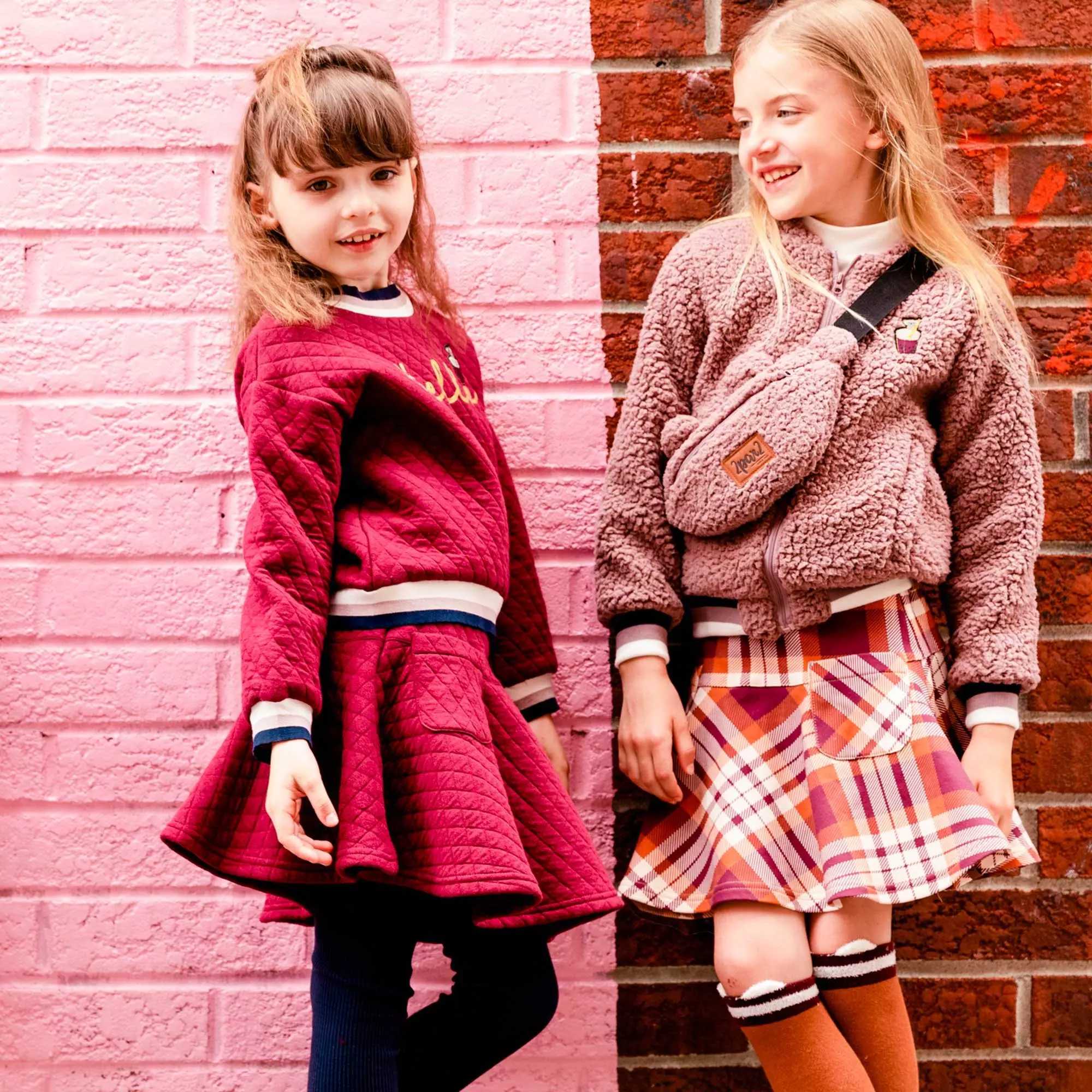 Playful and pretty in a flared silhouette, Plaid Skirt With Pocket Plum and Ocher is perfect for any occasion. This cotton skirt features an allover plaid pattern with a wide waistband and two patch pockets on the front. It pairs easily with any top in Friends & Bubble Tea collection.