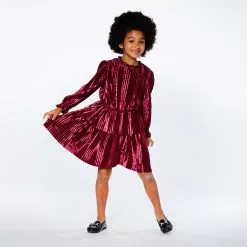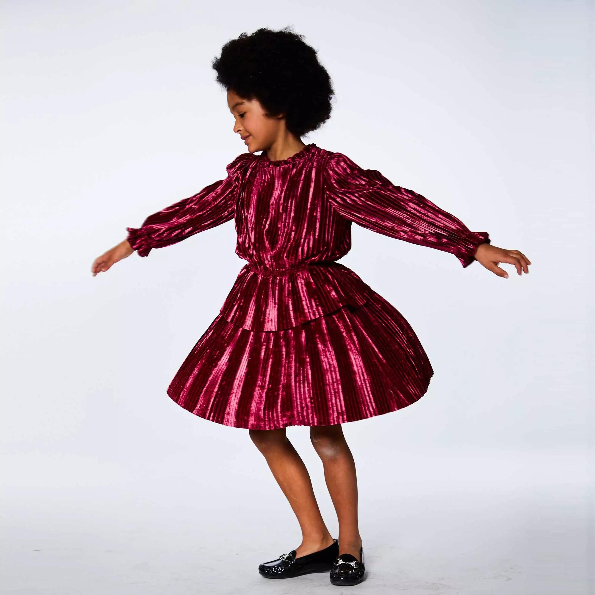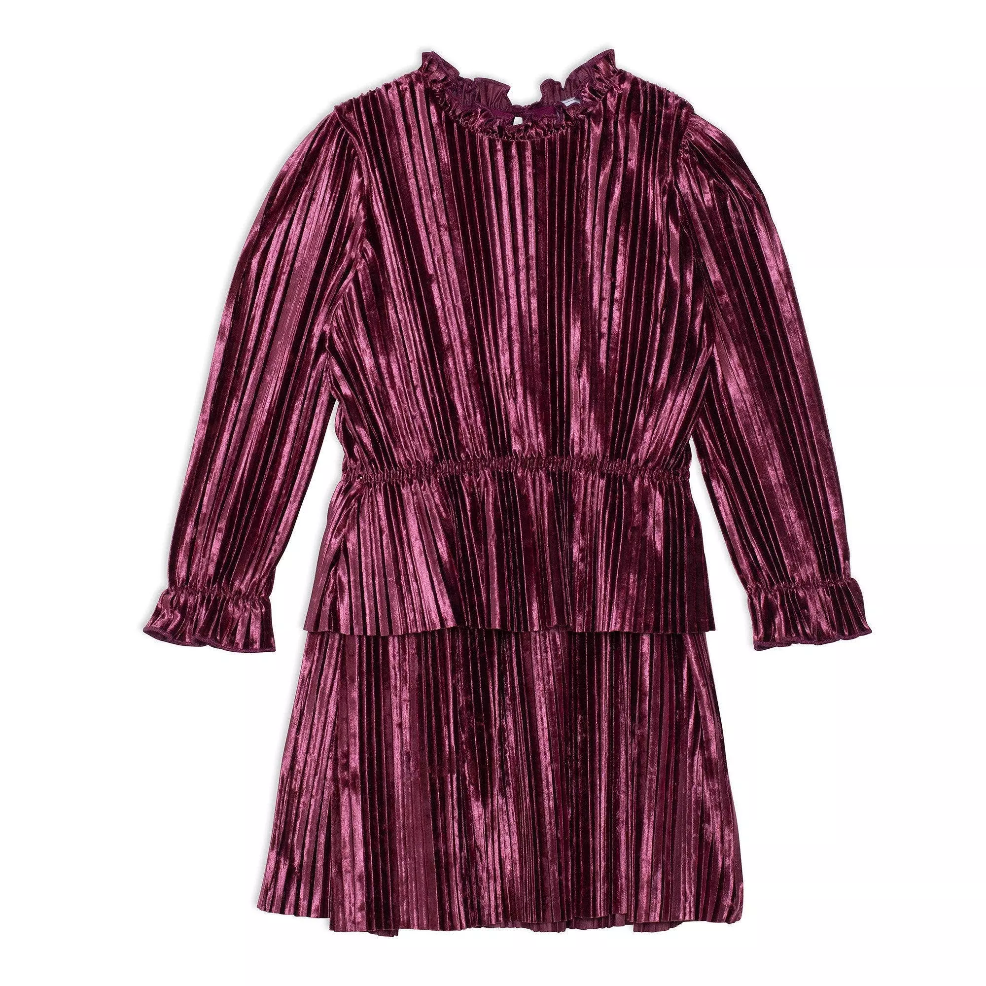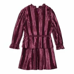 Long sleeve crinkle dress silver grey and red violet is a perfect choice for any party or special occasion. This design features long sleeves with elastic cuffs, a round neckline, and an elastic waist adorned with a fabric overlay.