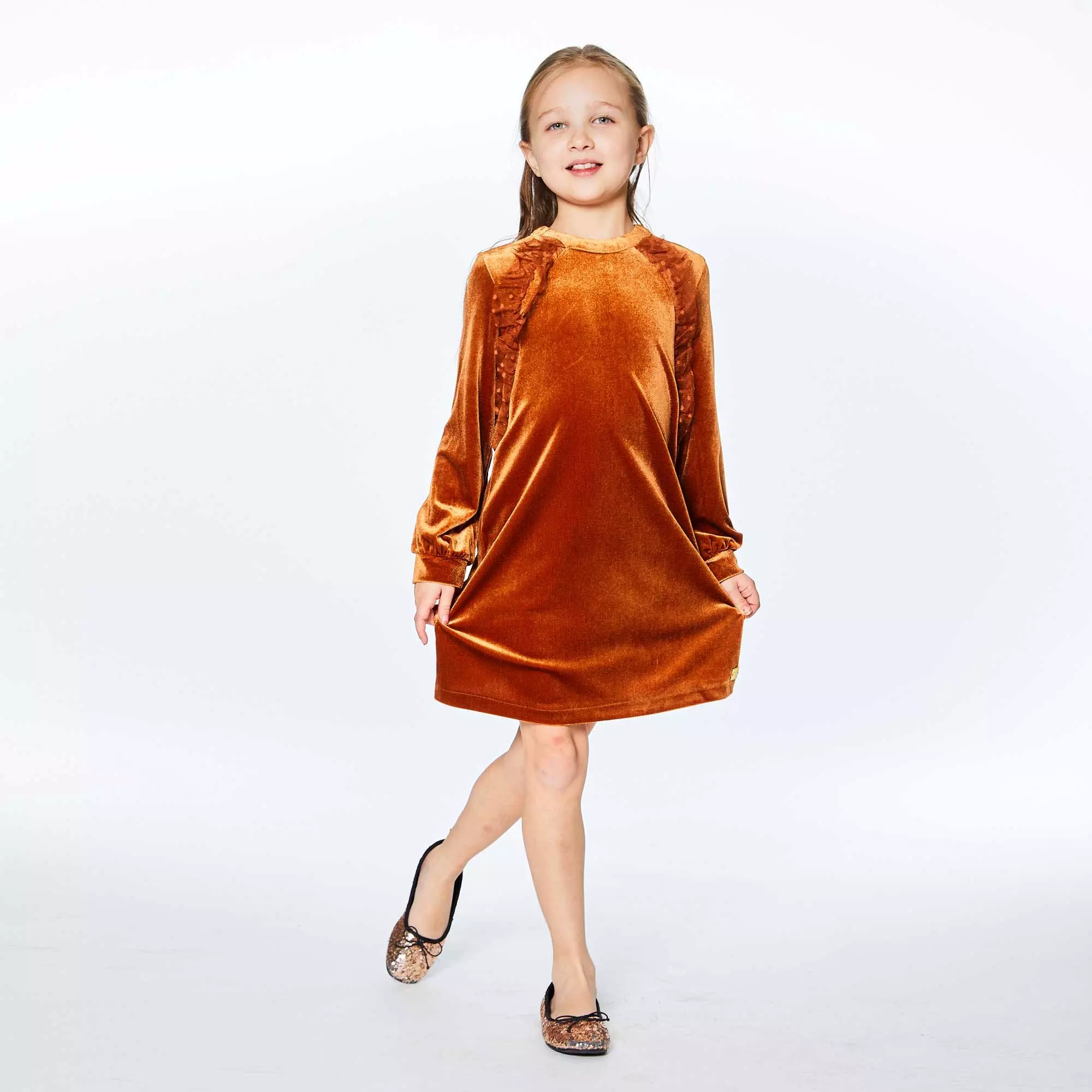 Polka dot ruffle trim adds a little something extra to this versatile velvet-finish shift dress. This Long Sleeve Dress With Frill features long sleeves, a round neckline and a metal logo plate at the hem. The stretch fabric makes it equal parts comfortable and chic.