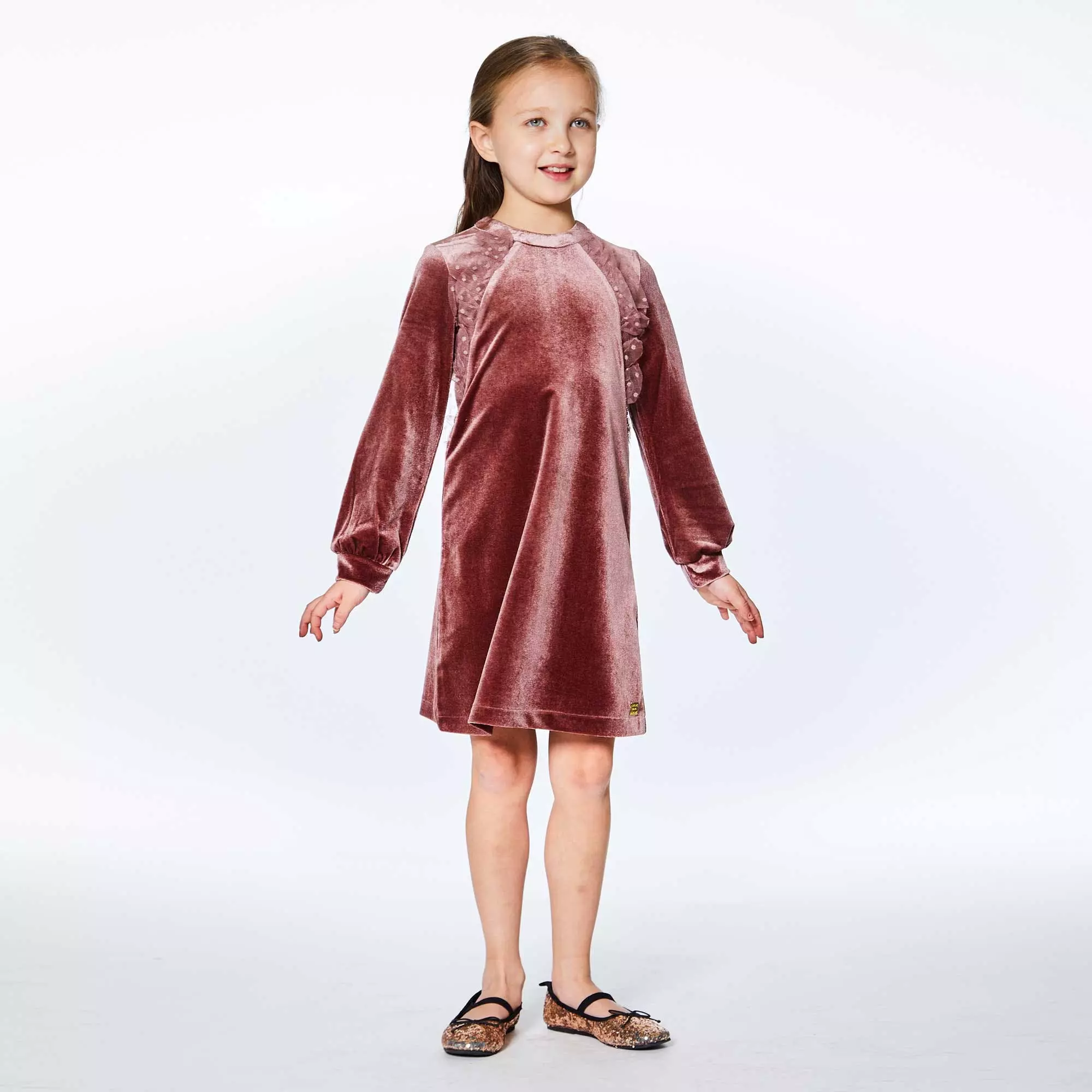 Polka dot ruffle trim adds a little something extra to this versatile velvet-finish shift dress. This Long Sleeve Dress With Frill features long sleeves, a round neckline and a metal logo plate at the hem. The stretch fabric makes it equal parts comfortable and chic.