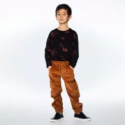 Worn alone or layered beneath a hoodie, long sleeve jersey printed top with dogs is one that he can wear any day of the week.