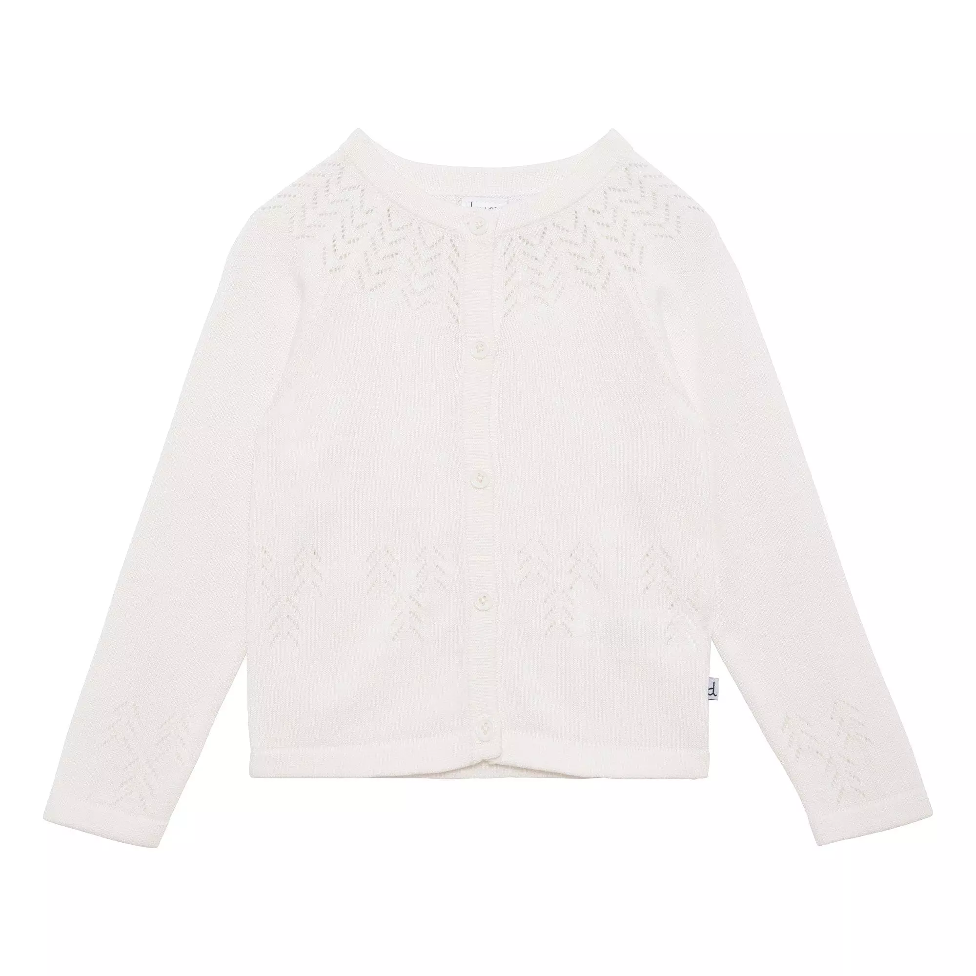 Pointelle stitching adds distinctive style to this Long Sleeve Knitted Sweater Off White. This versatile layer is made from 100% cotton and features a timeless cardigan silhouette with long raglan sleeves, a round neckline, and little buttons down the front.