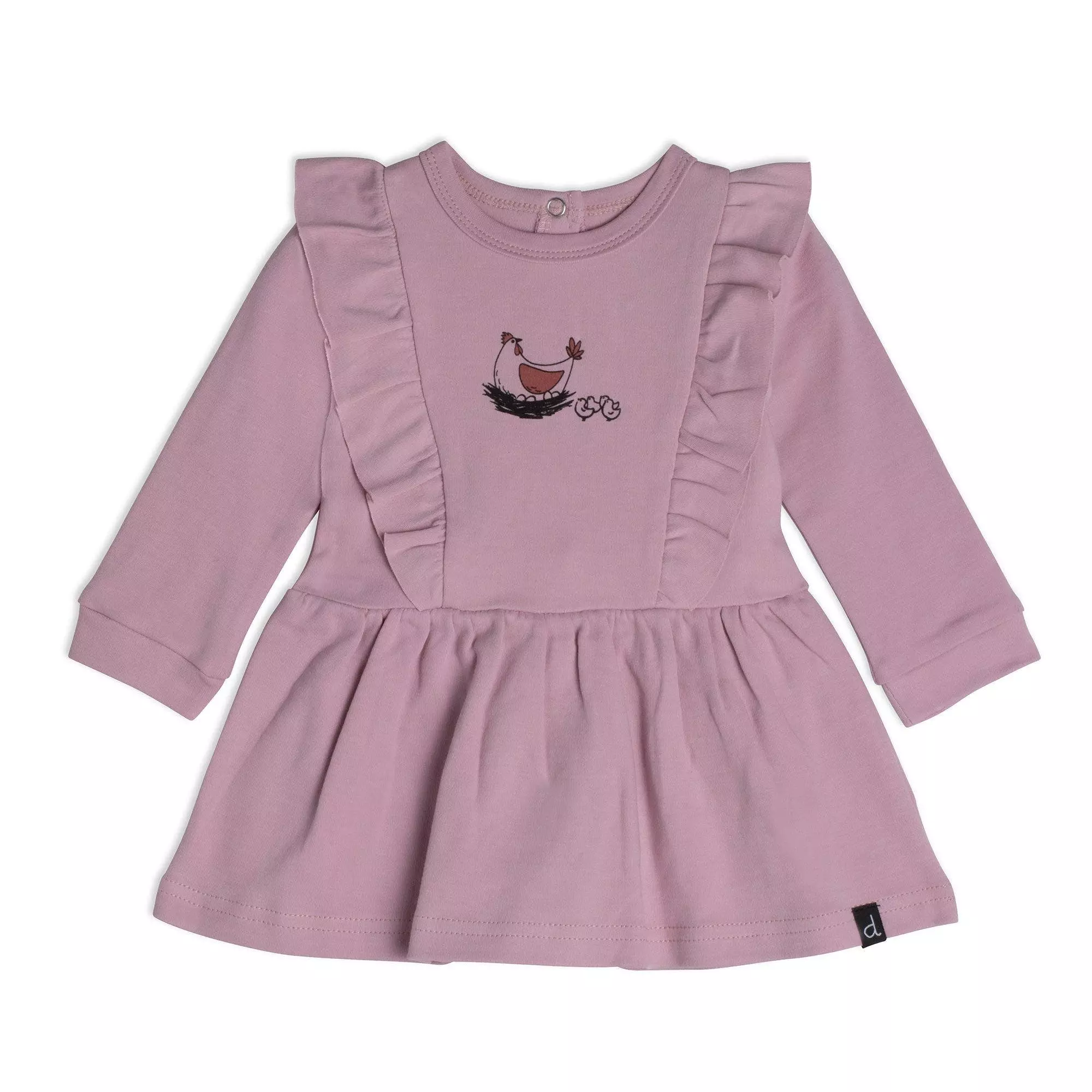 A pretty flower print makes this hat and bib set perfect for pairing with any look in chick chick chiken collection. The organic cotton hat and bib set printed flowers dusty purple features a soft hat with a bow on the front and a triangular bib with ruffle trim.