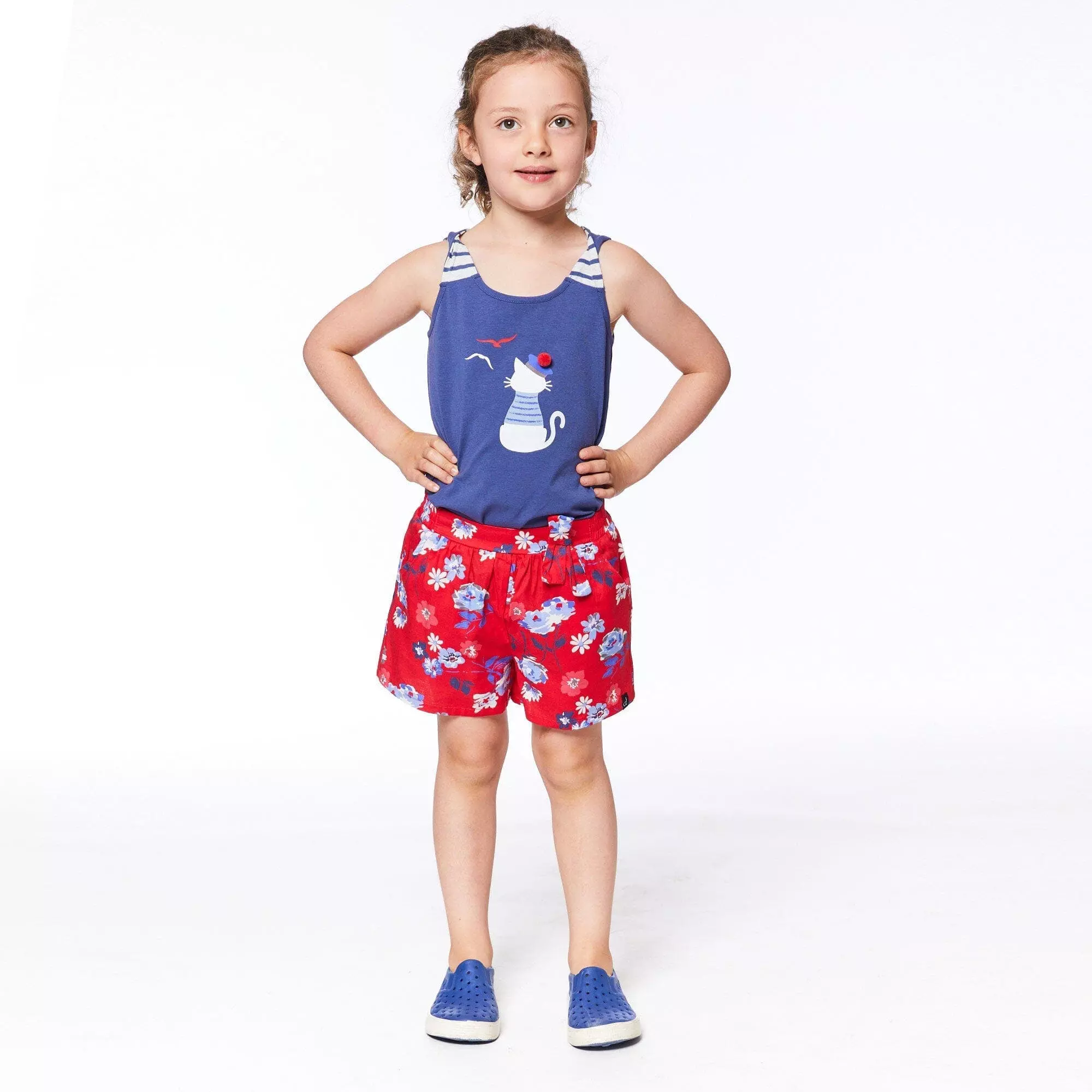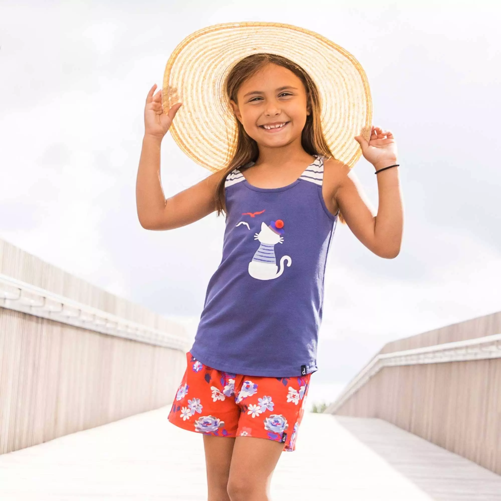 Twisted shoulder straps add distinctive style to this Organic Cotton Graphic Tank Top Navy Blue. This comfortable stretch cotton tank top features wide straps, a scoop neckline, striped accents, and a cute kitty cat print on the chest. It’s finished with a rounded back hem that adds a sporty touch.