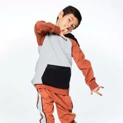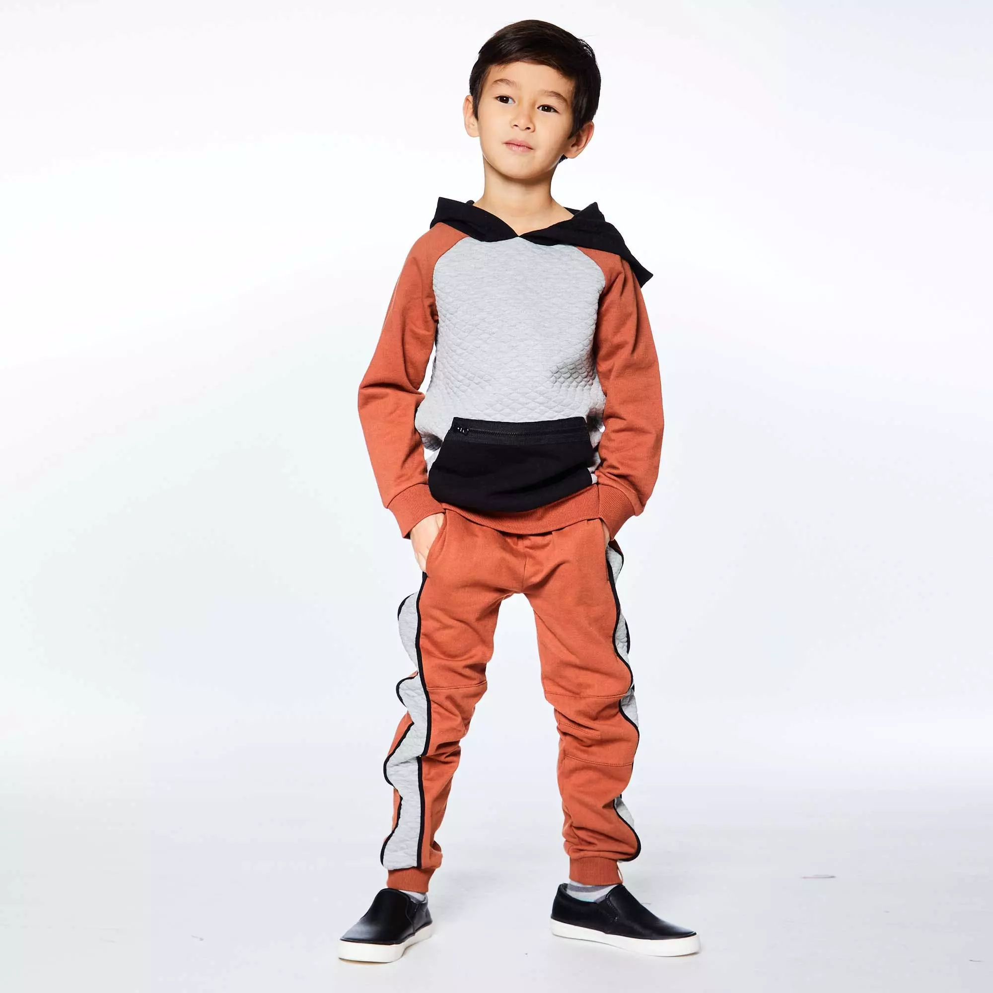 A quilted body lends just the right amount of texture to this Quilted Hooded Fleece Top With Zipper Pocket. This pullover hoodie features contrast raglan sleeves, a contrast hood, a contrast rib knit hem, and a front zipper pocket for added fashion and added function.