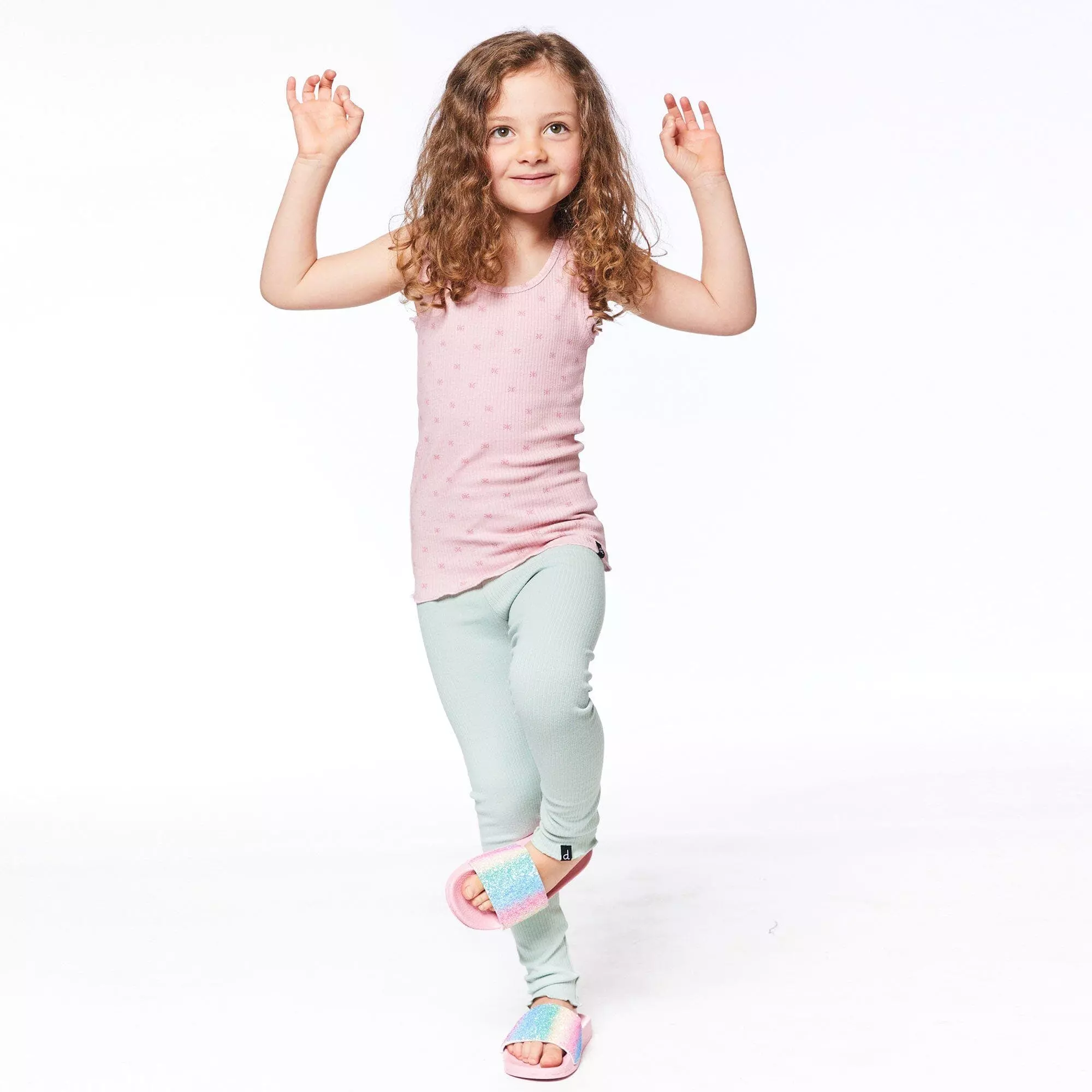 With a soft rib knit texture, this Solid Legging Frosty Green is one that she’ll want to wear over and over again. This stretch cotton/elastane legging features an elastic waistband, lettuce edging, and a small logo label at the hem. Team with a ribbed top or mix and match with any of her favorite tees.