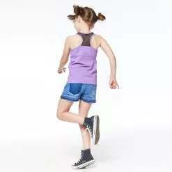 Sporty with sweet details, this T-Back Tank Top With Mesh Purple is one she’ll want to wear over and over again. This racerback tank is made from soft stretch cotton fabric and features wide straps, a scoop neckline, and contrast mesh trim. A sequin and glitter popsicle on the chest gives it a one-of-a-kind look.
