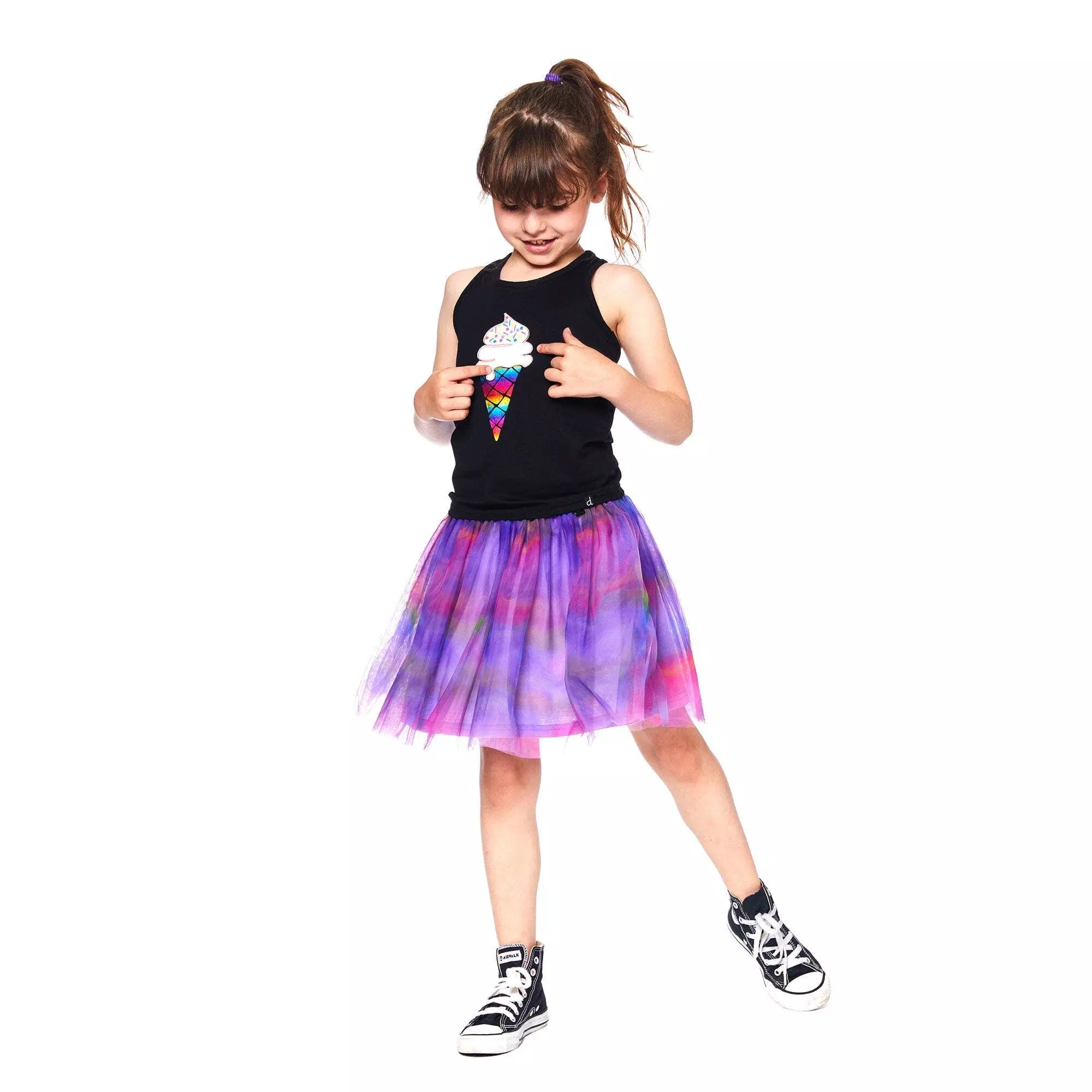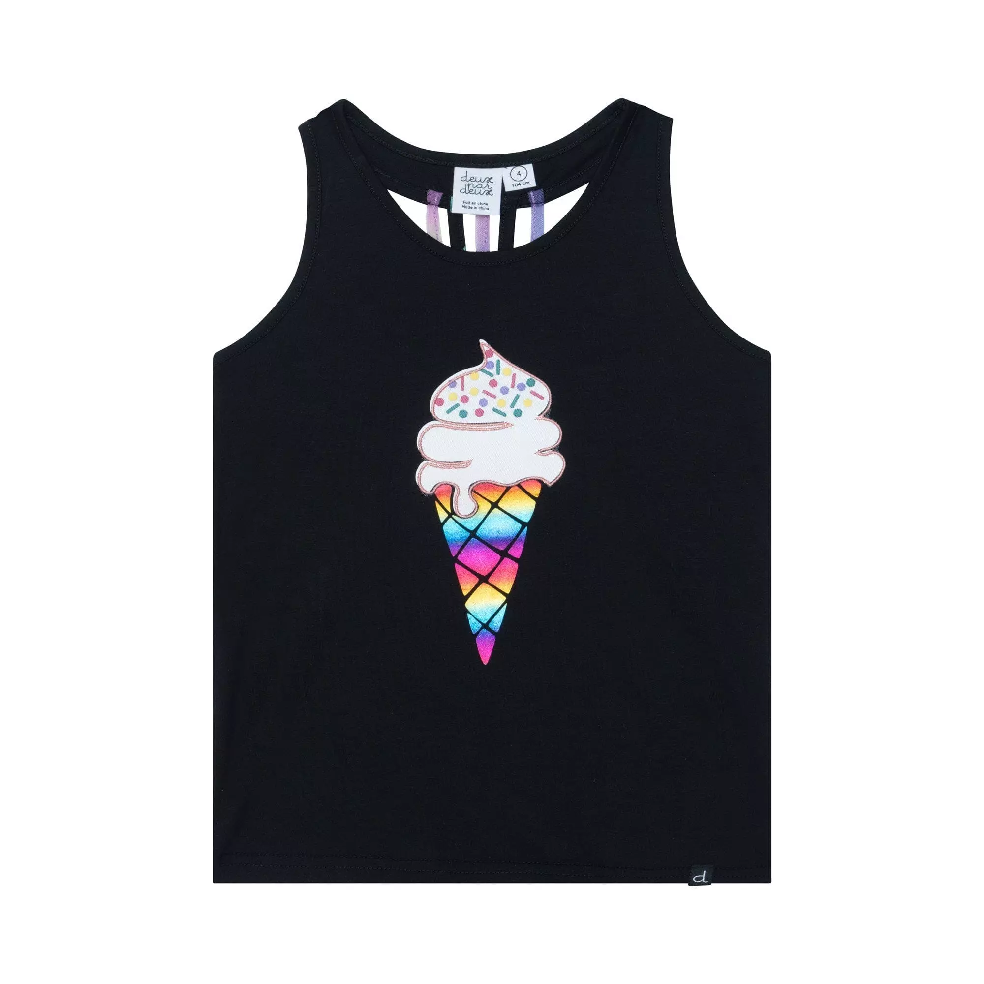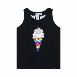 With embroidered details and a colorful graphic print, this tank top mixes and matches easily with any bottom in this Life Is An Ice Cream collection. This Tank Top With Back Straps Black features a sleeveless silhouette with a scoop neckline, contrast straps down the back, and a playful ice cream cone foil graphic on the chest.