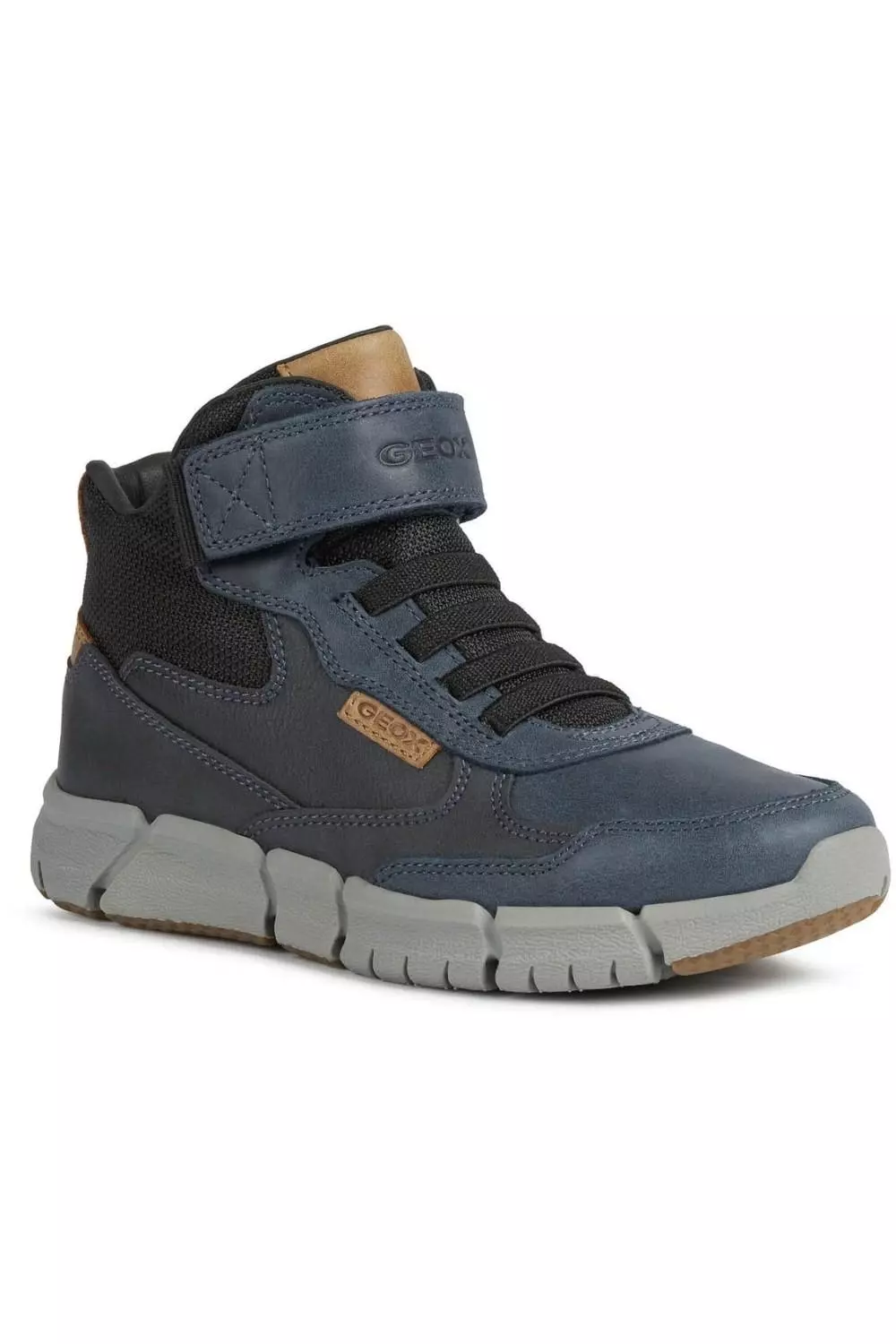 Boy’s ankle boot offering excellent levels of flexibility, cushioning and stability. With a premium cushioning construction lifted with unique outdoor detailing, the Flexyper ABX ankle boot provides feet with the utmost flexibility and stability thanks to the innovative outsole. Snug and waterproof, it has been crafted from nubuck and a waxed-leather-effect material in a navy-blue-and-gray colorway.