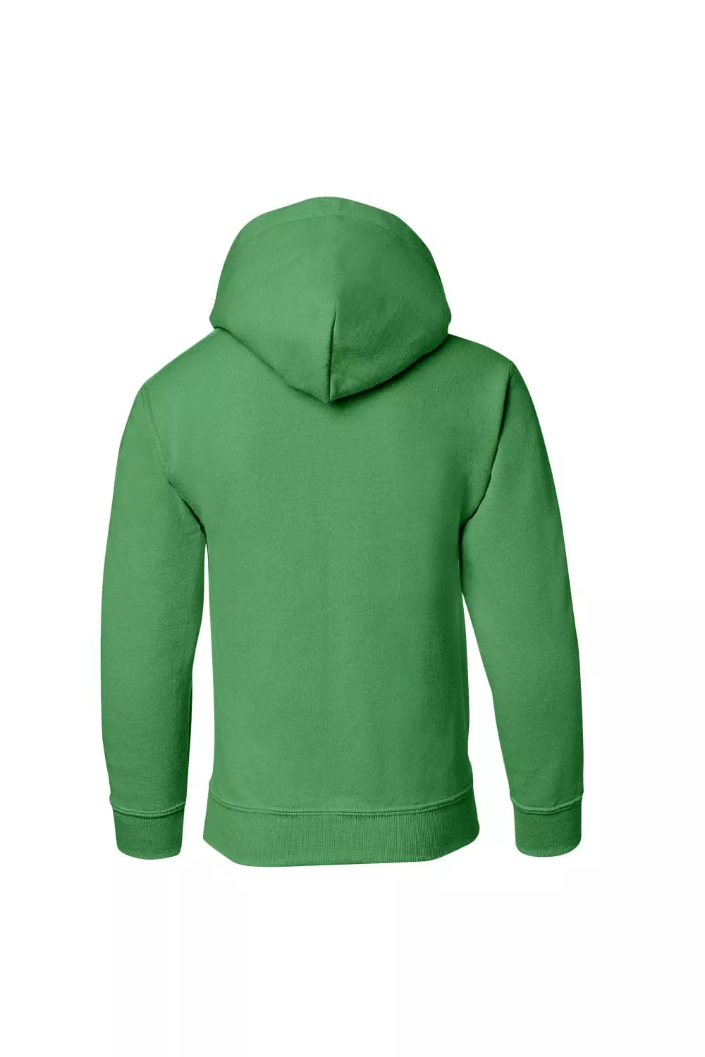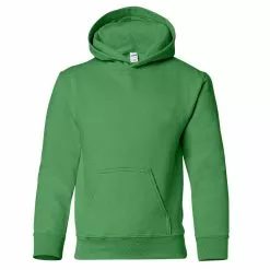 – Air jet spun yarn for softer feel and no pill.- Double lined hood without drawstring, in line with EU childrenswear legislation.- Double needle stitching.- Pouch pocket.- Set-in sleeves.- 1 x 1 athletic rib with spandex.- Quarter turned to eliminate center crease.