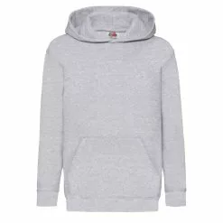 – Single jersey back neck tape for comfort.- Double fabric hood without drawcord, in line with European Childrenswear legislation.- Front pouch pocket.- Waist and cuff rib in Cotton/Elastane for shape retention.- Weight: 280g/m².- Fabric: 80% Cotton Belcoro® Yarn 20% Polyester.- FRUIT OF THE LOOM – a brand steeped in tradition, offering a comprehensive range of garments..- Gender: Unisex Kids