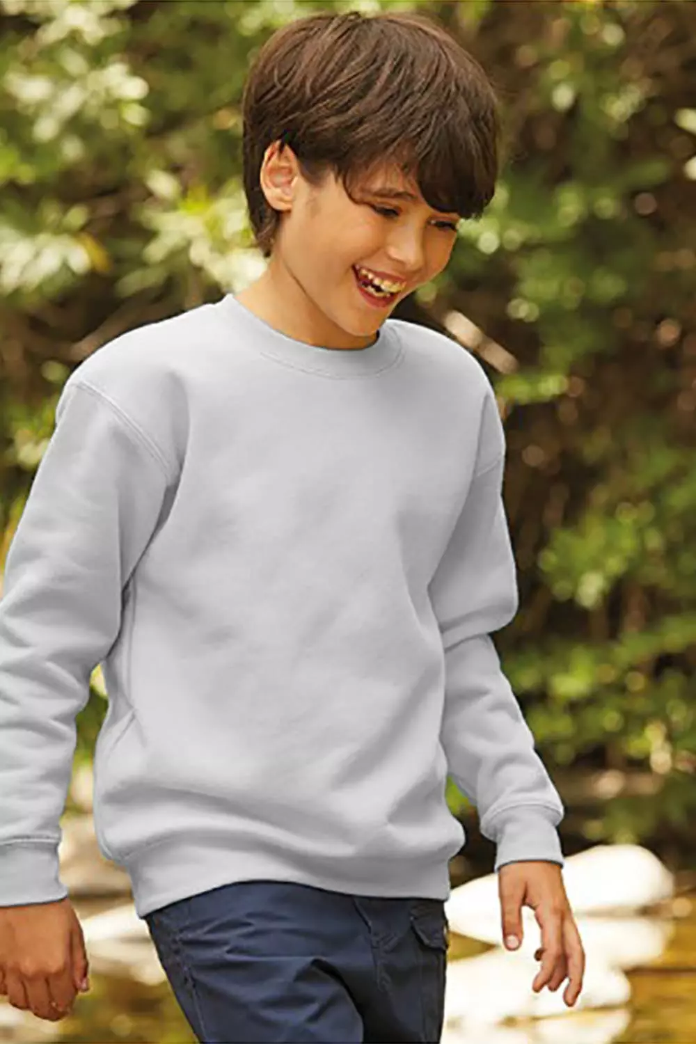 – Single jersey back neck tape.- Neck, waist and cuff in cotton/elastane rib.- Age Chest(to fit – ins) 3/4 – 26, 5/6 – 28, 7/8 – 30, 9/11 – 32, 12/13 – 34, 14/15 – 36.- Fabric: 70% Polyester, 30% Cotton..- Gender: Unisex Kids
