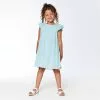 Talk about twirl-worthy! An A-line flowy shape, generously gathered hi-low skirt, contrast piping and cute back tie detail make this pretty dress a warm-weather must. Snap closure on shoulders Pre-washed for extra softness 100% cotton