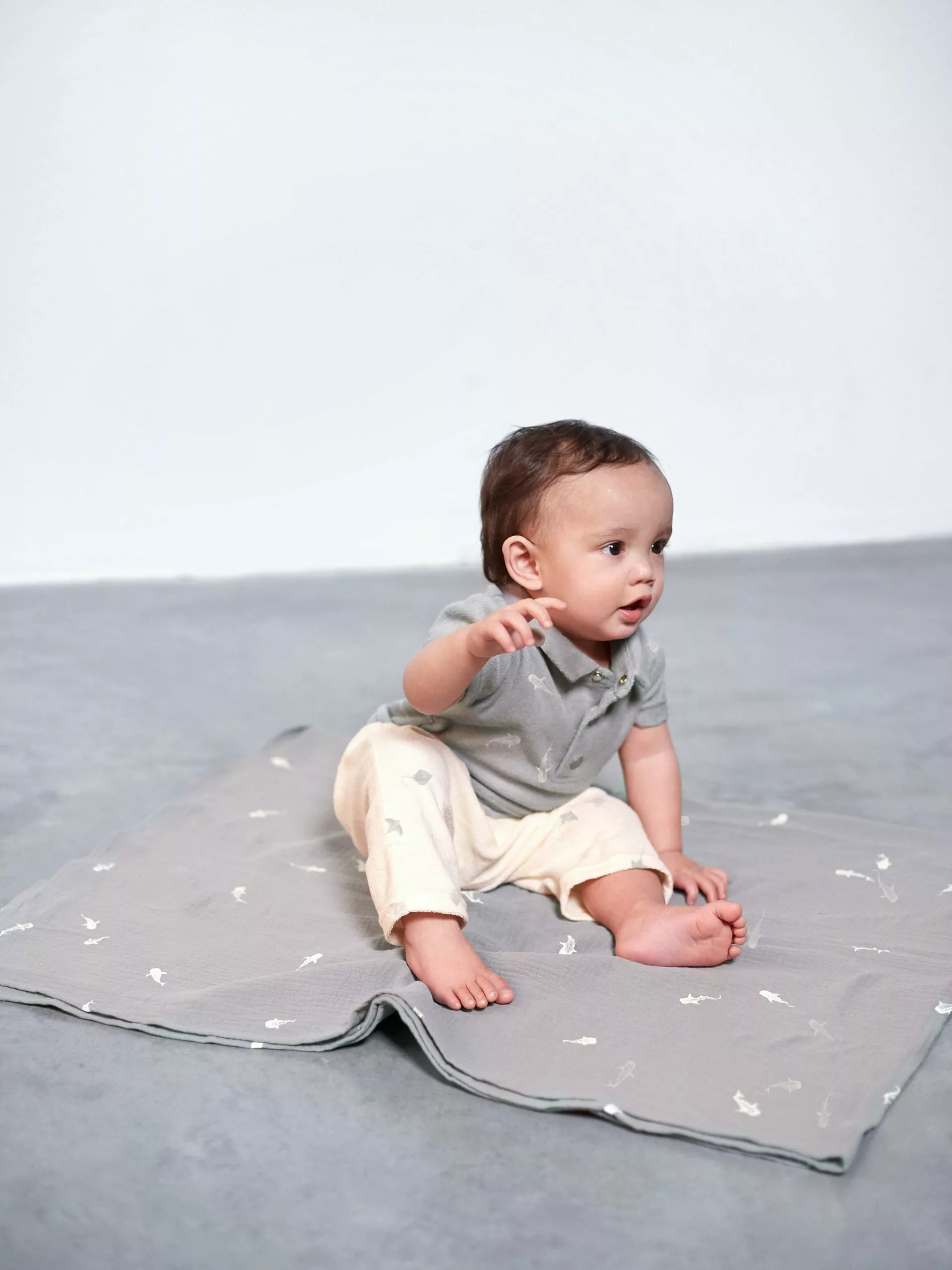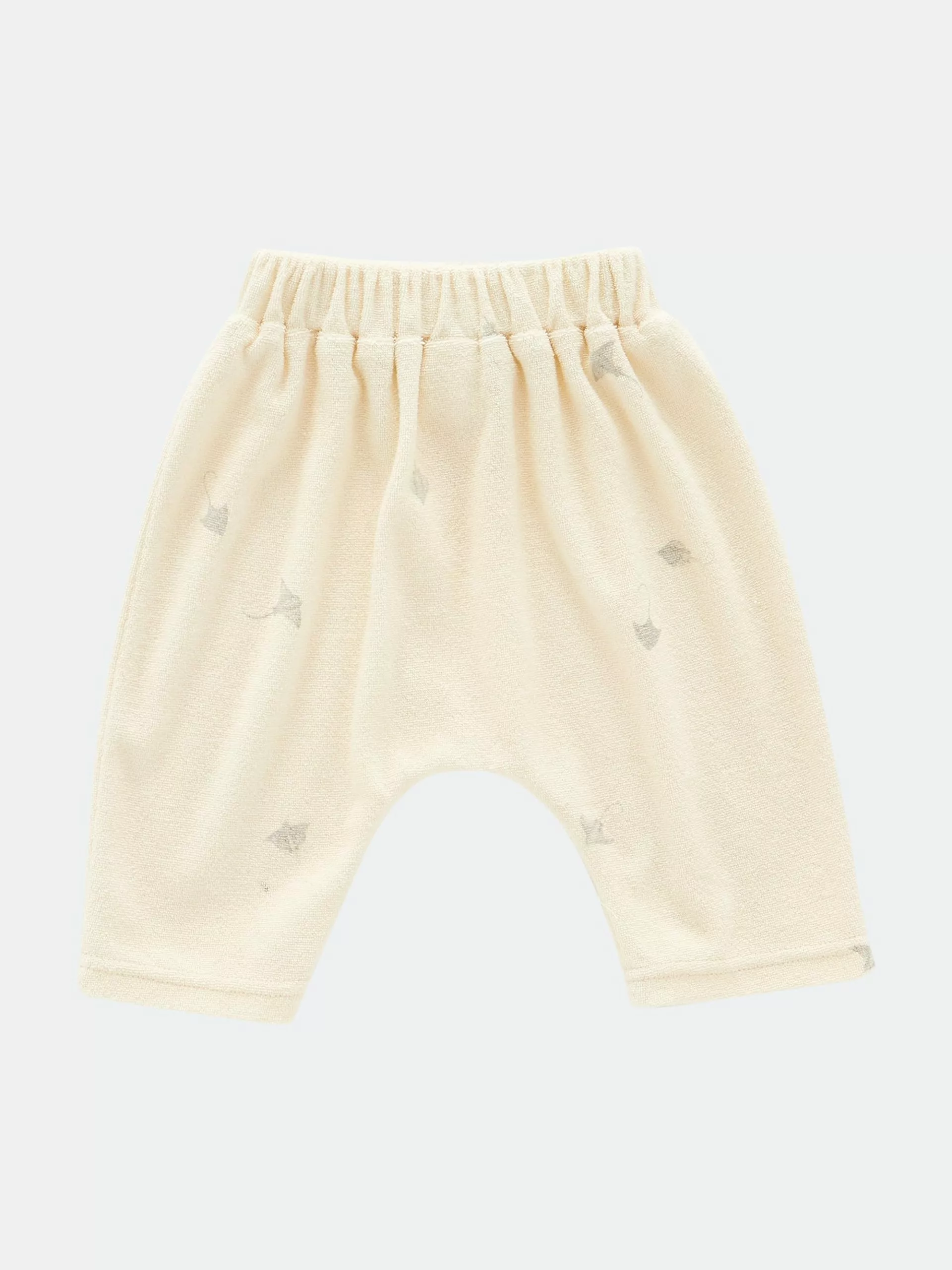 An updated version of our ever favorite pair of harem pants. Now in soft terry cloth with buttoned up faux placket and whale sharks print inspired by our home base Pasific Ocean. Elasticized waist Gender neutral fit great for boys and girls alike 100% cotton
