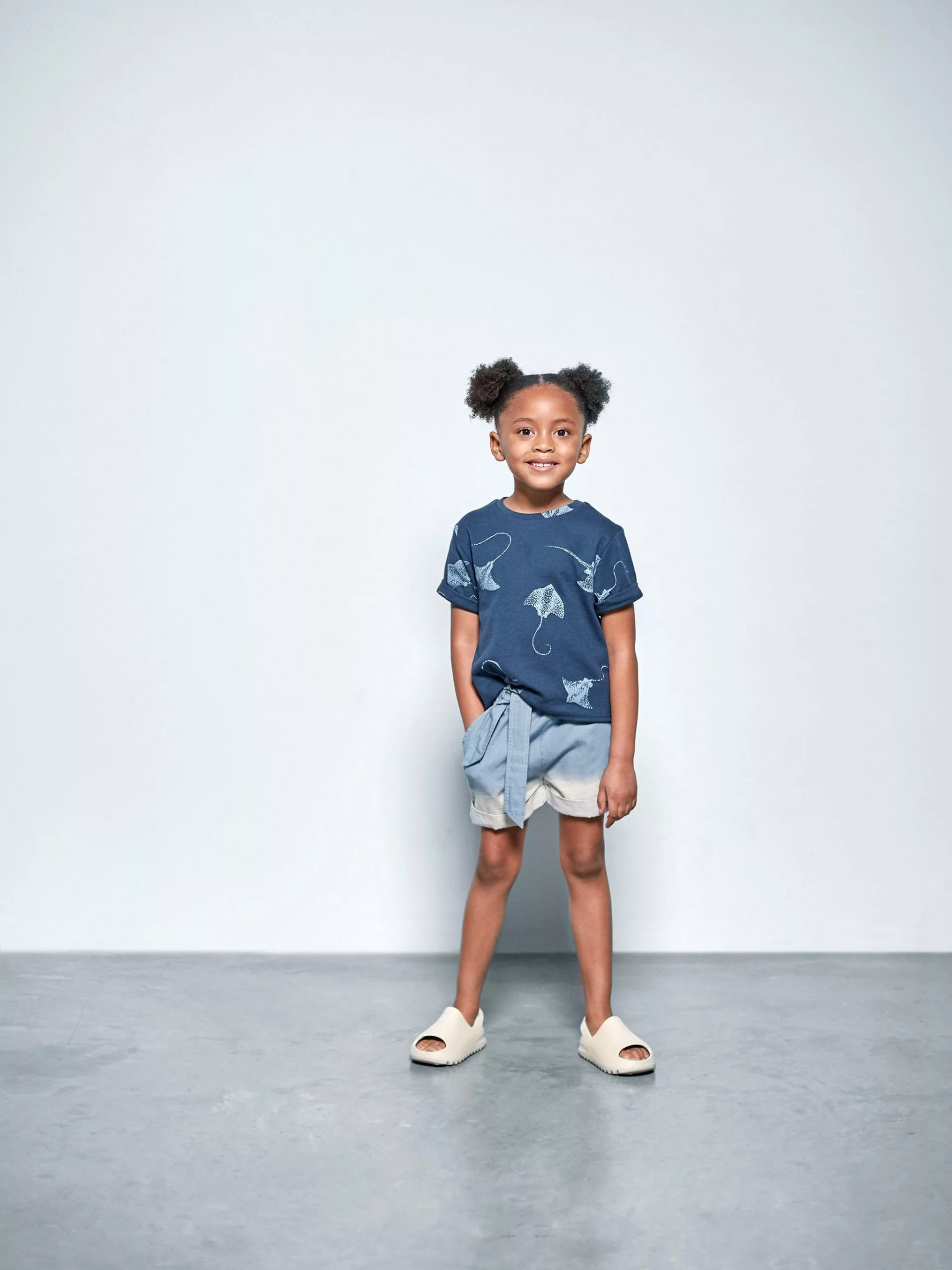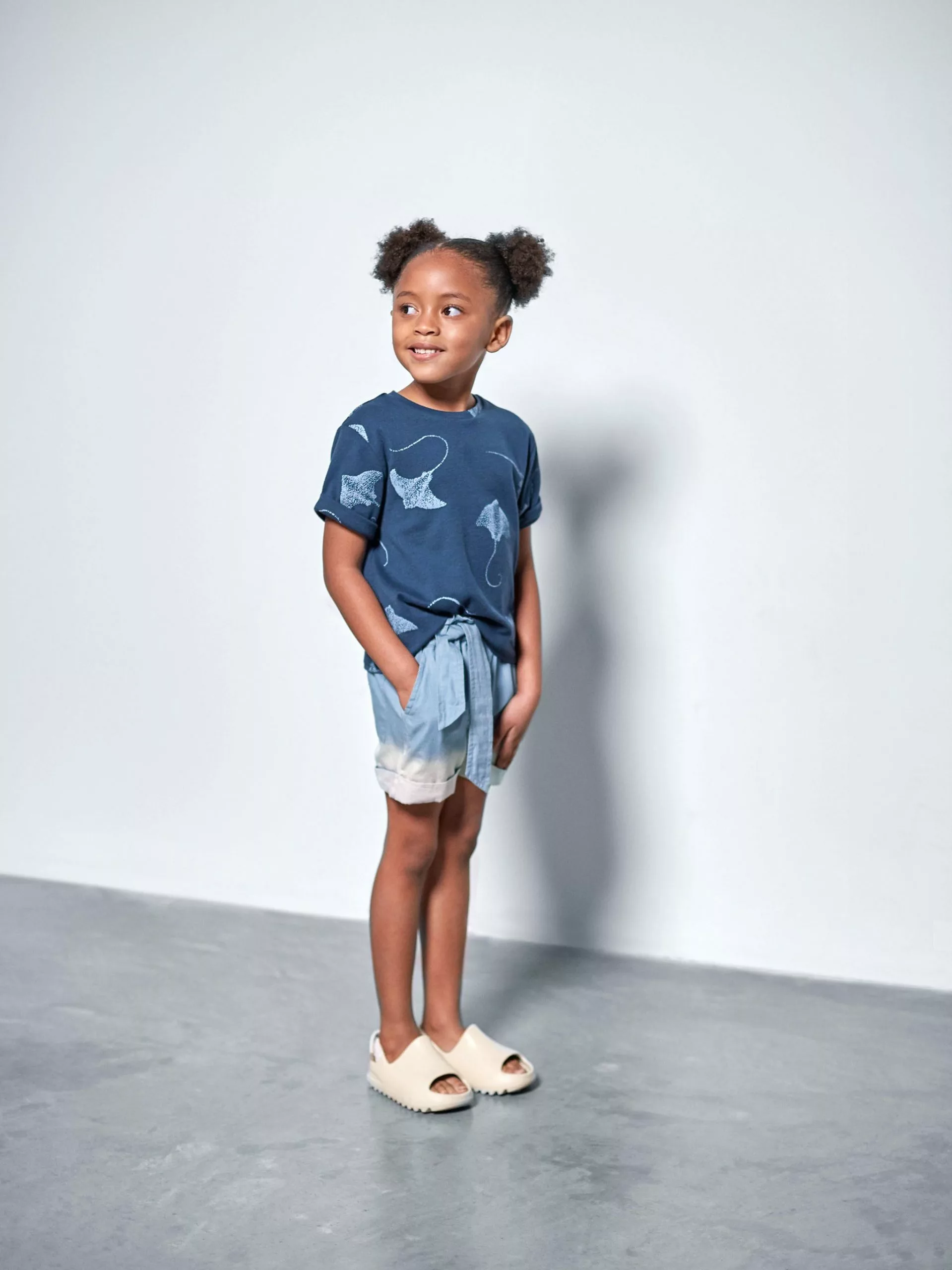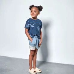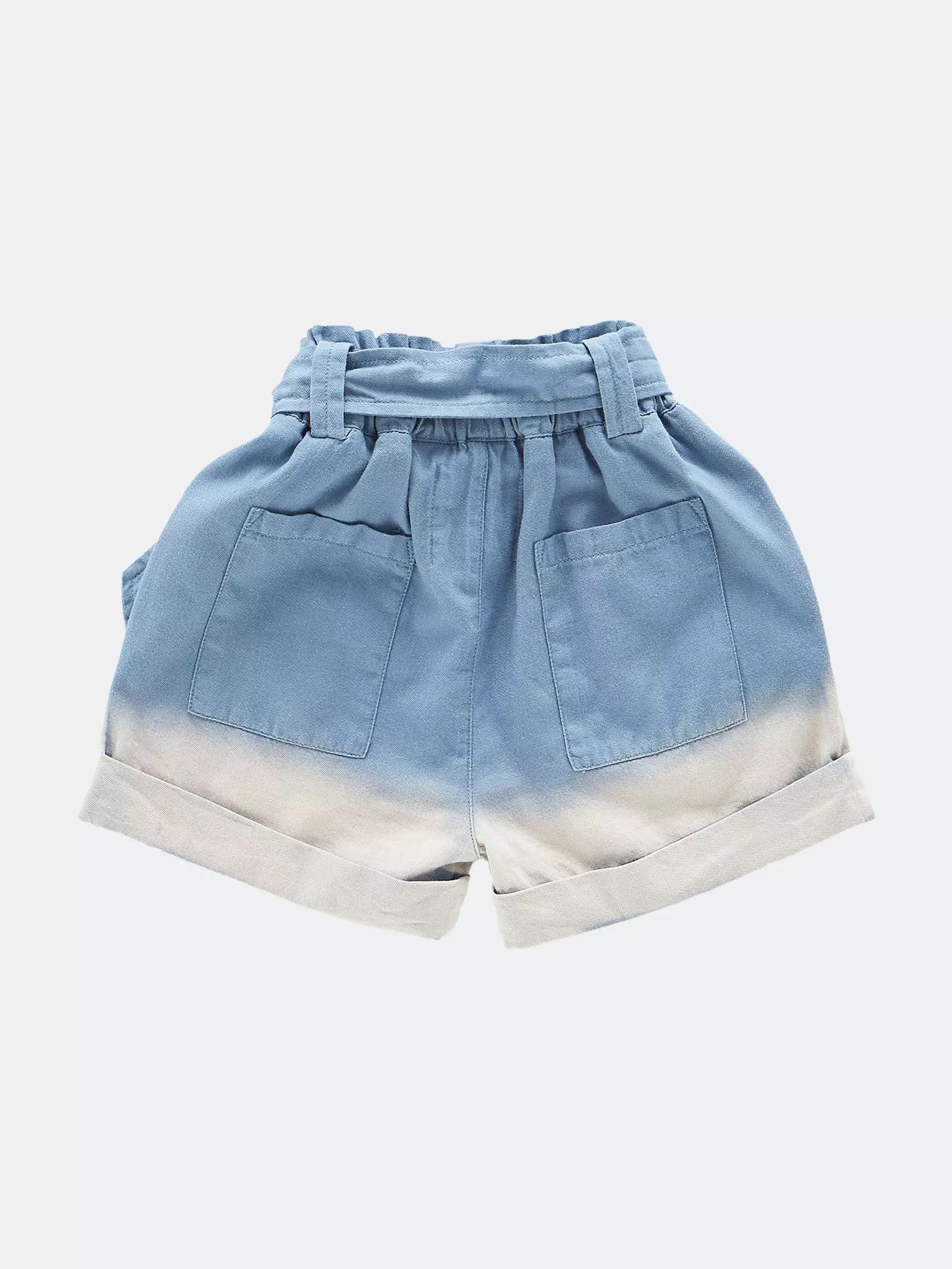These super soft summer shorts for girls are featuring dip-bleached finish, topstitched details, and comfortable elasticized waist with a matching tie belt.